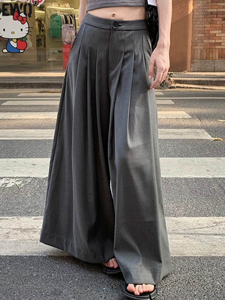 [EWQ] プリーツウエストスーツパンツソリッドルーズ因果オールマッチ服夏ワイドレッグズボン 16Y9226 サマー 夏物 ワイドパンツ ソリッドカラー