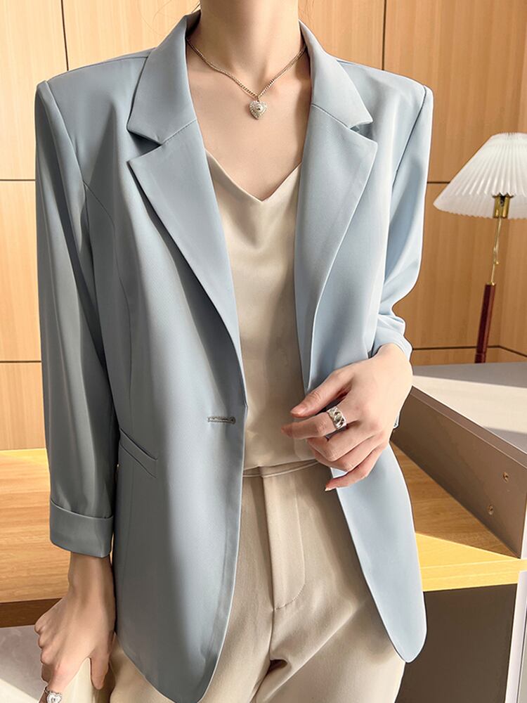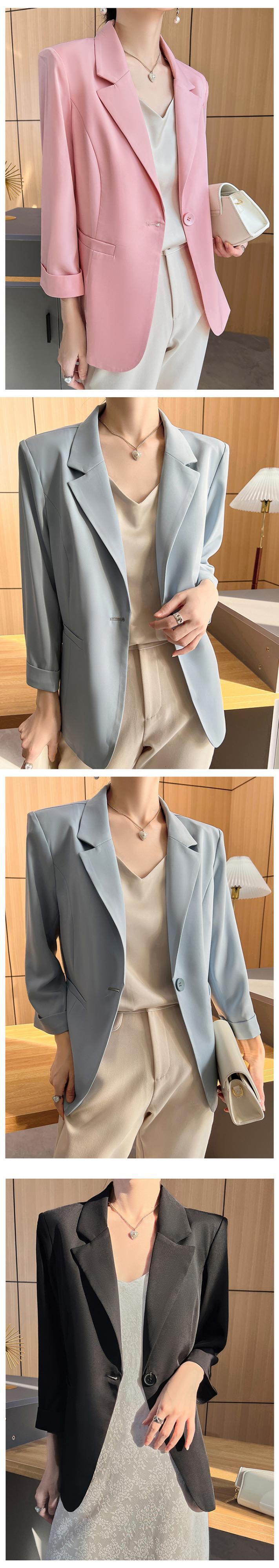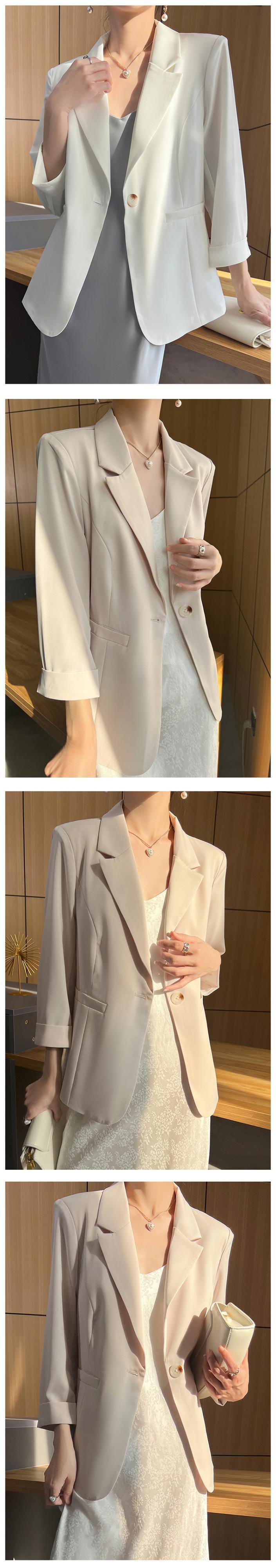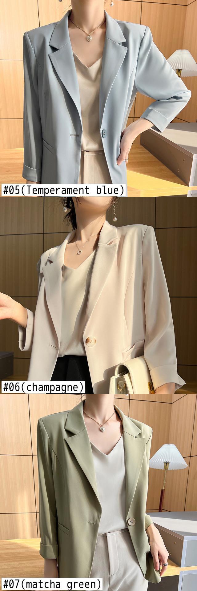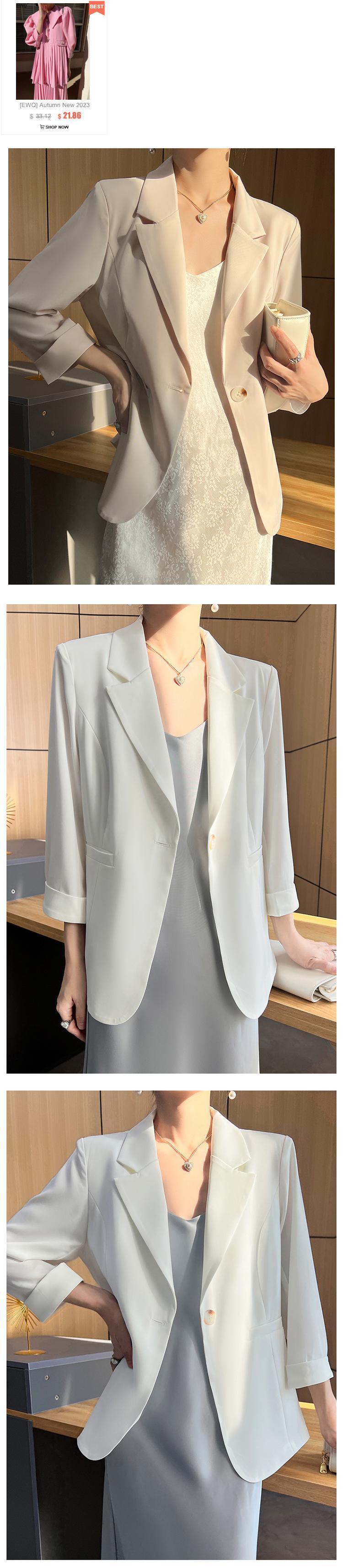 [EWQ] 夏薄型ブレザーコート潮長袖ルーズフィット 1 ボタンスーツジャケット気質服 ロング サマー 夏物