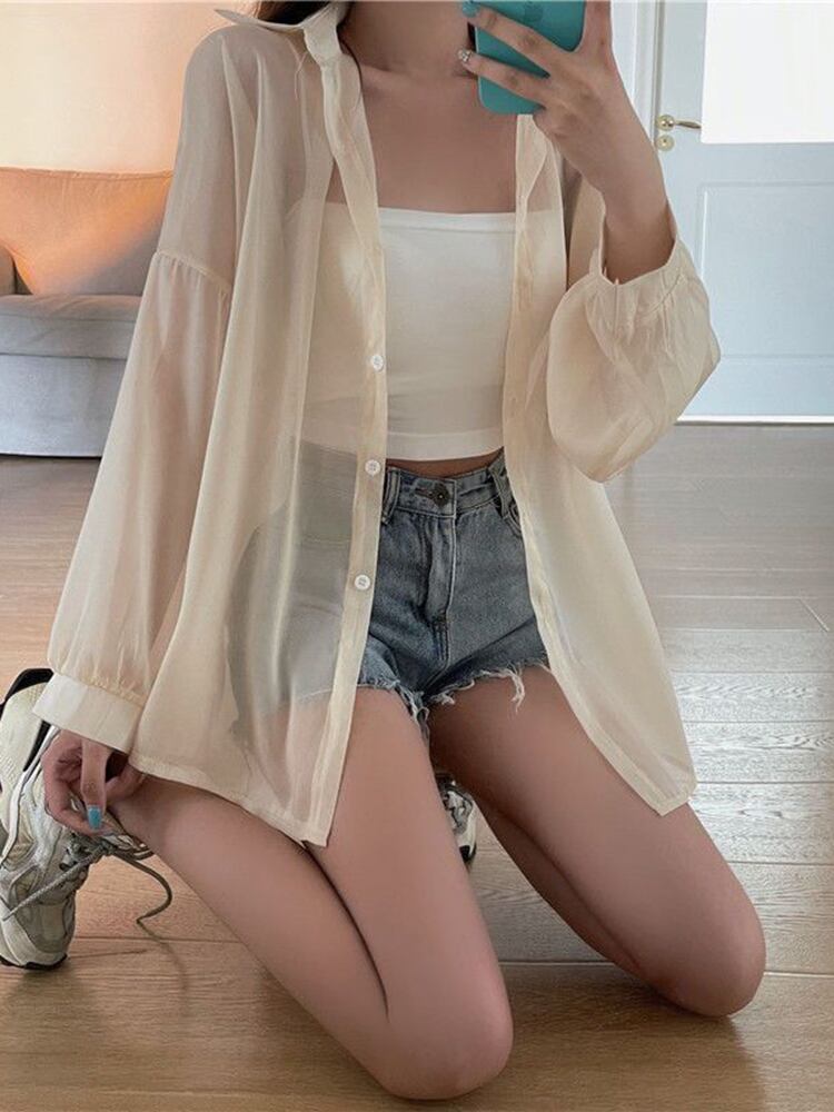 [EWQ] 薄手シャツ レディース ランタン スリーブ ルーズ フィット サマー ビーチ ホリデー パースペクティブ タイド ランタンスリーブ 夏物