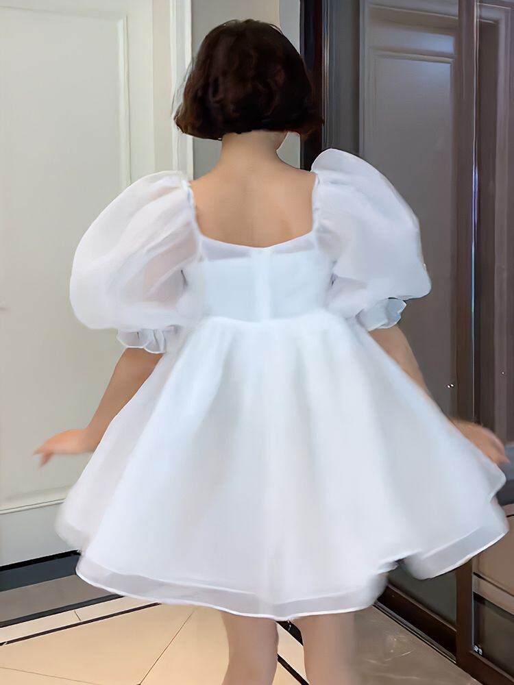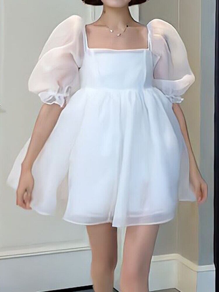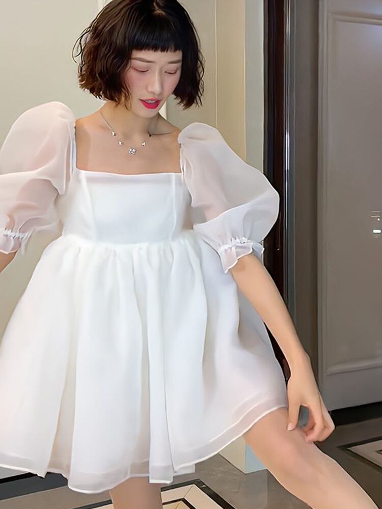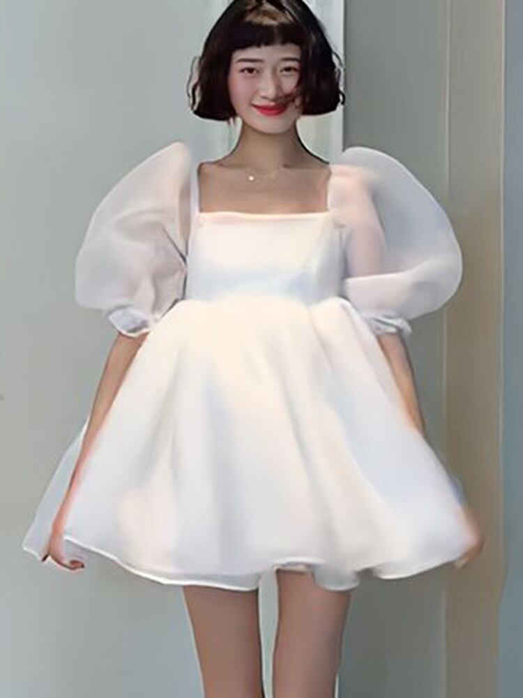 [EWQ] ホワイトバブルスリーブミニドレス気質スクエアネックショートドレス夏潮 Vestido サマー 夏物 スクウェア