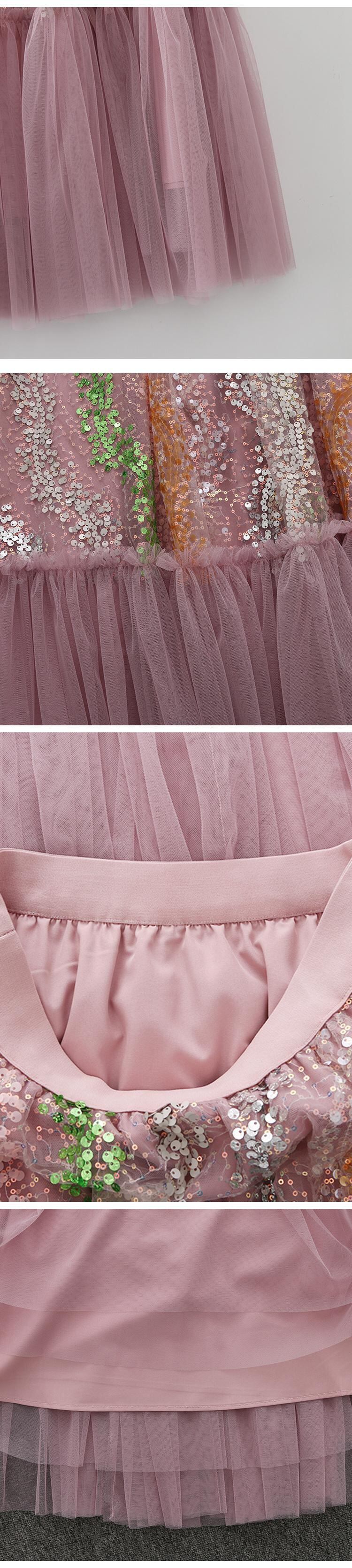 [EWQ] スパンコール刺繍甘いスカートウエスト弾性メッシュスプライスコントラストカラー A ラインスカート夏 エラスティック 伸縮 大人ガーリー スウィート キュート カジュアル サマー 夏物 Aライン