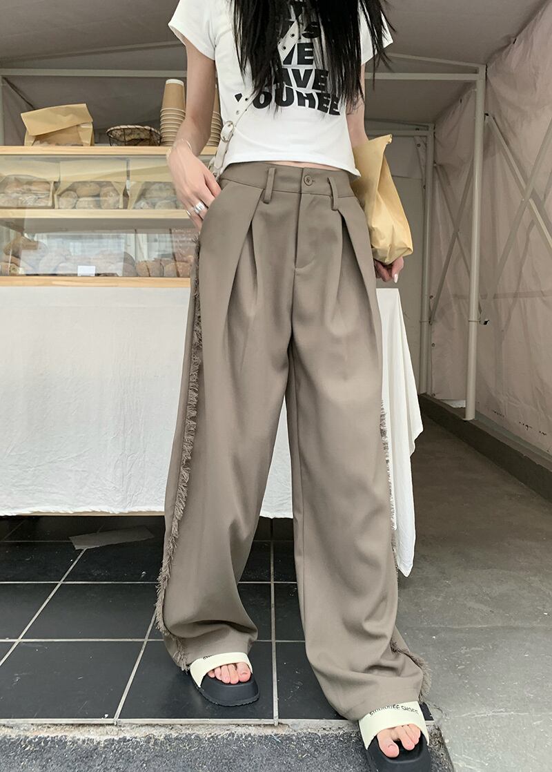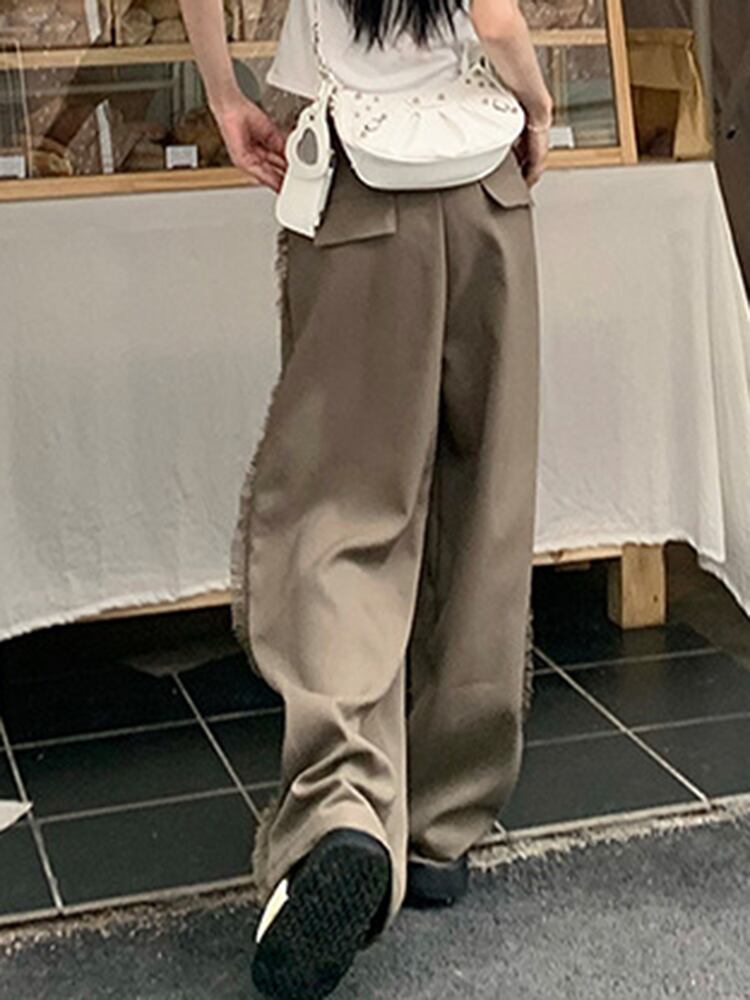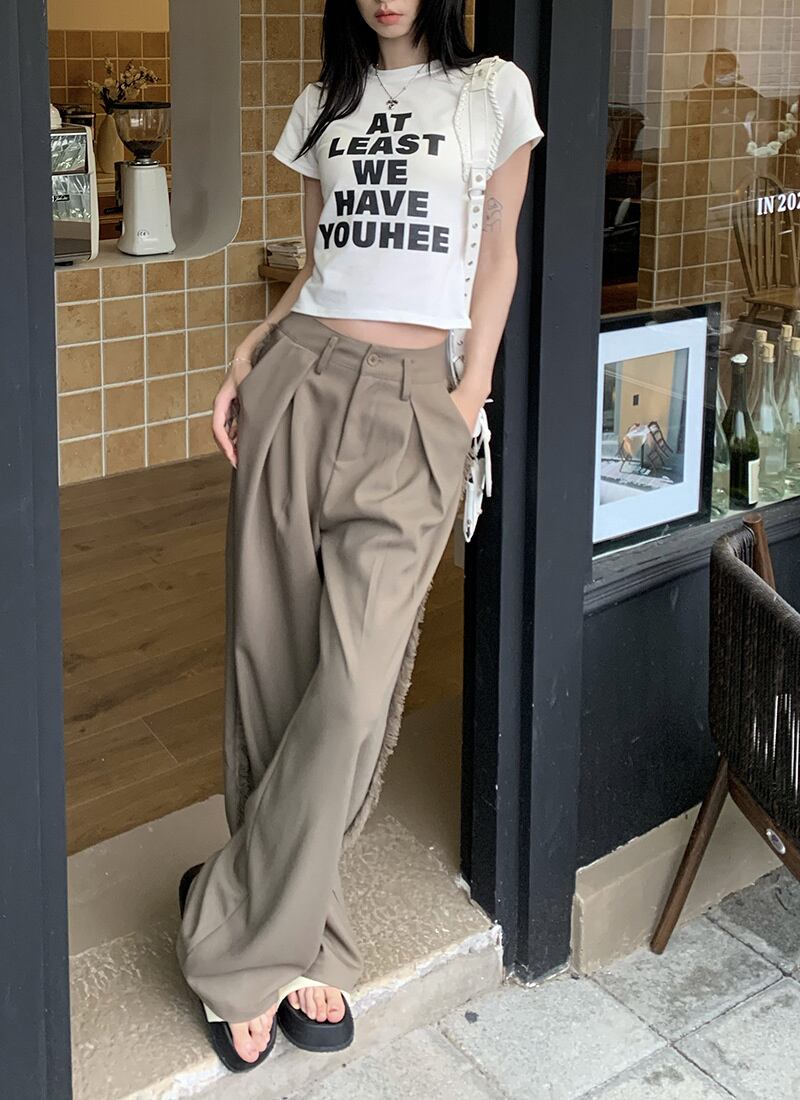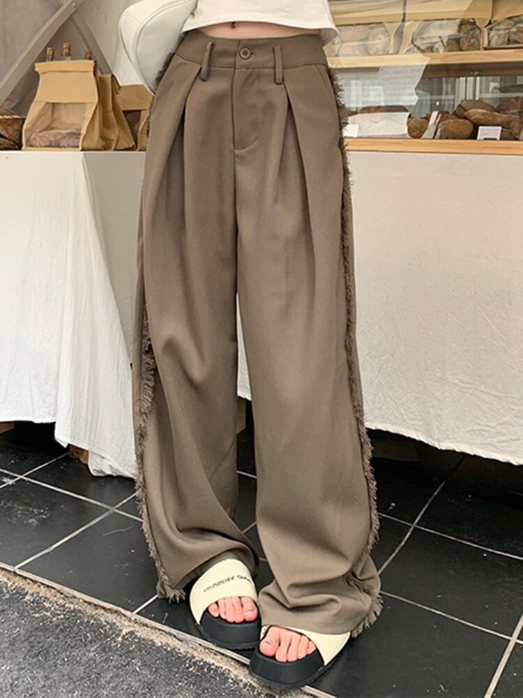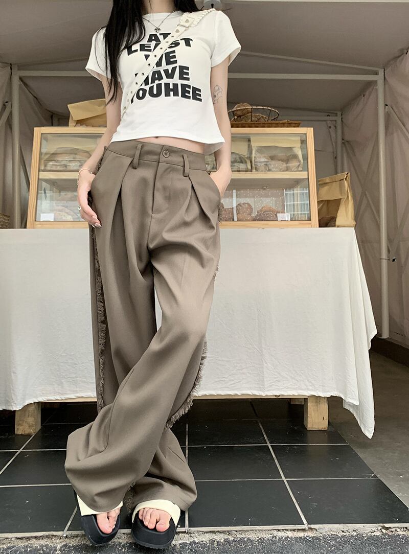 [EWQ] レディース サイドテル パンツ 春夏 タイドウエスト ワイドレッグ ストレート パンツ ストリート スプリング 春物 サマー 夏物 ワイドパンツ