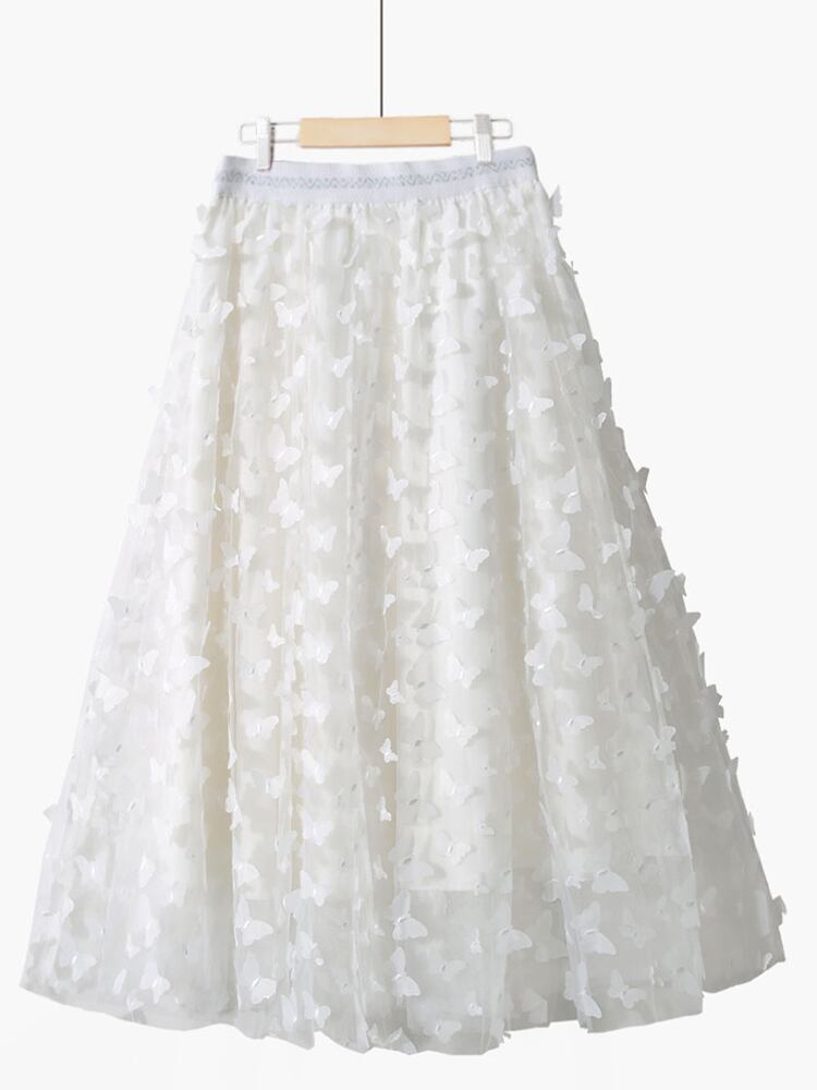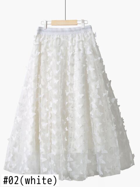 [EWQ] 3D 刺繍 A ライン メッシュ スカート 弾性ウエスト コントラスト ミッドカーフ ガーゼ スカート 夏潮 Faldas エラスティック 伸縮 サマー 夏物 Aライン