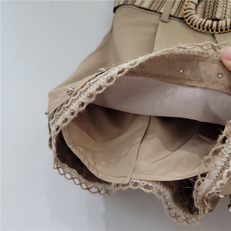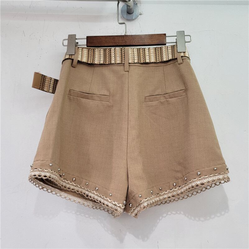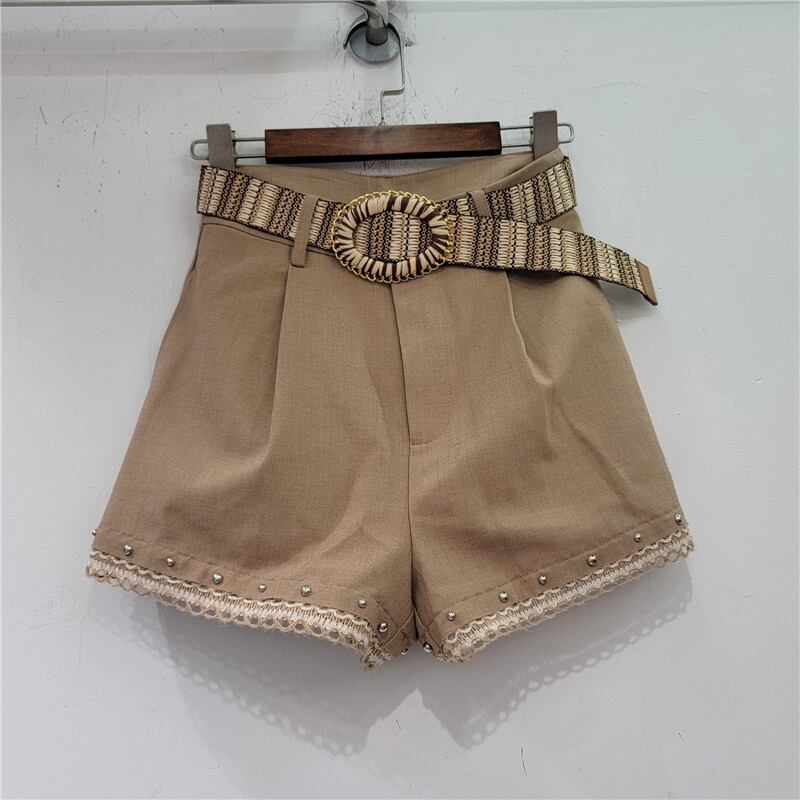 [EWQ] スプライスレースリベットショーツストリートワーシトワイドレッグホットショートパンツ夏潮パッチワーク サマー 夏物 ブルマー ワイドパンツ