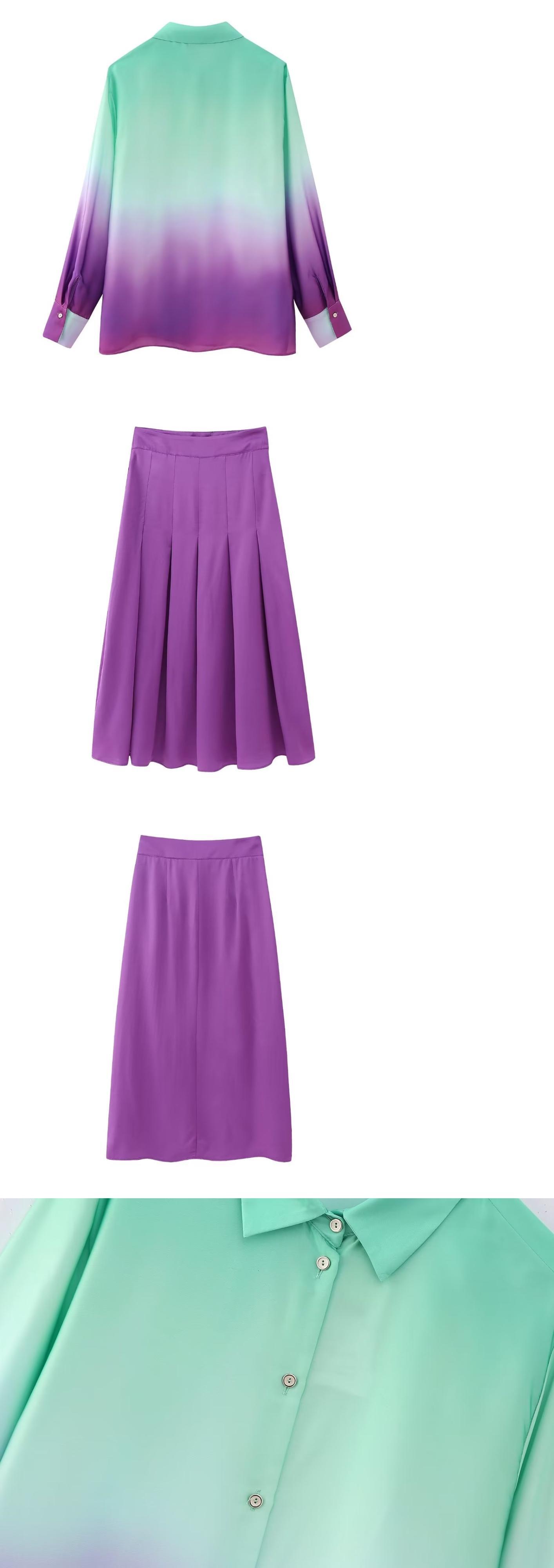 [EWQ] タイダイパープルグラデーションシャツ + ウエストプリーツ A ラインスカート夏潮ツーピーススーツ サマー 夏物 Aライン