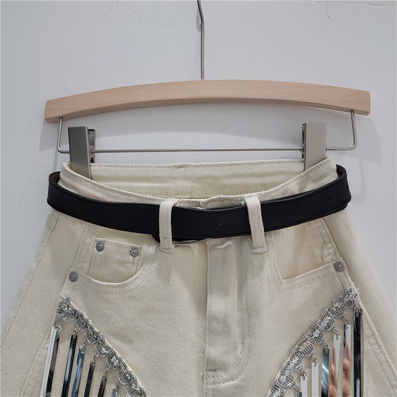 [EWQ] デニムショートパンツウエストスリム 1 ボタンストリートスパンコールテルワイドレッグホットショートジーンズ夏潮 6U453 サマー 夏物 ショーツ ブルマー ワイドパンツ