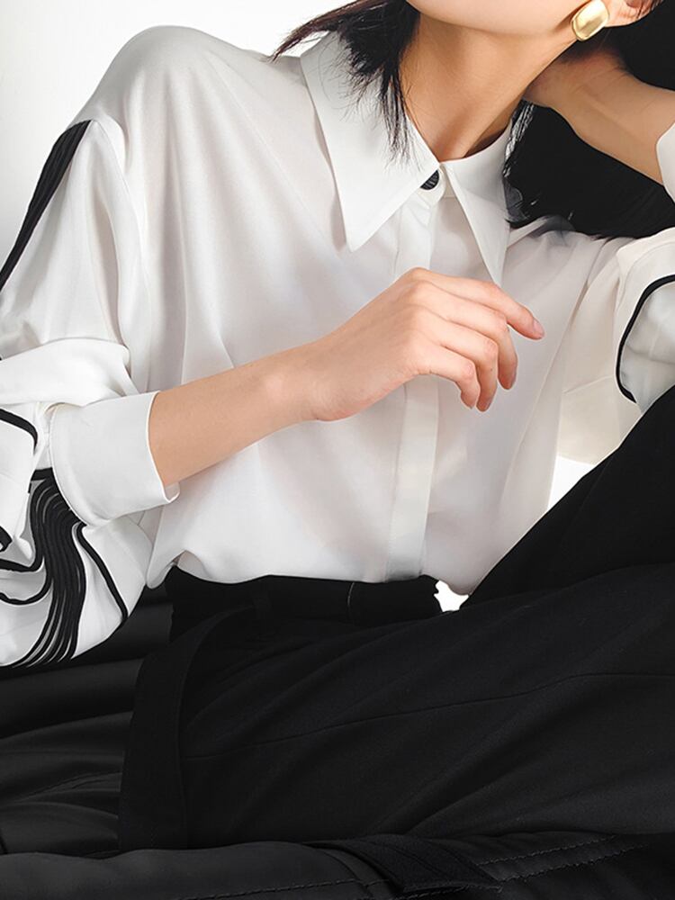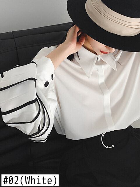 [EWQ] ランタンスリーブプリーツシャツルーズフィットシングルブレストトップ夏潮トップス 6U100 サマー 夏物
