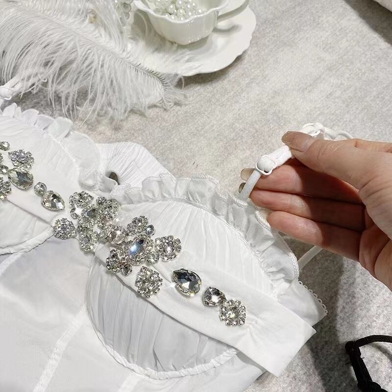 [EWQ] ダイヤモンド ビーズ ストラップ タンク トップセクシーオフ ショーダー スリム フィット白ベスト夏潮パッチワーク キャミソール トップ U170 ホワイト サマー 夏物
