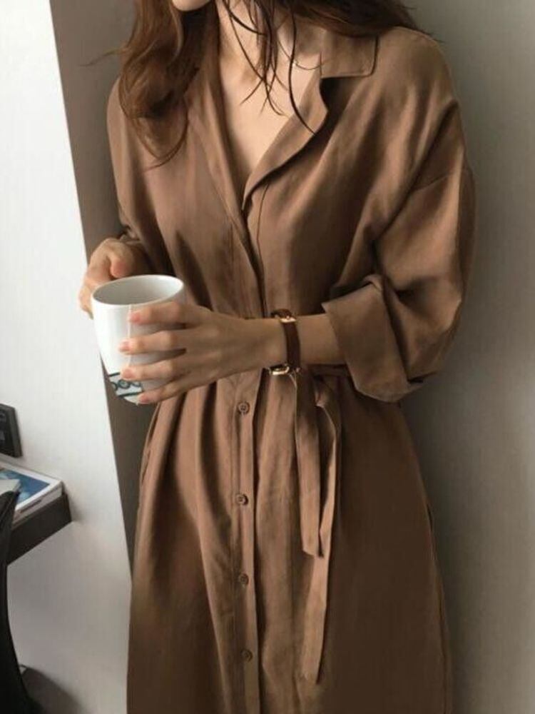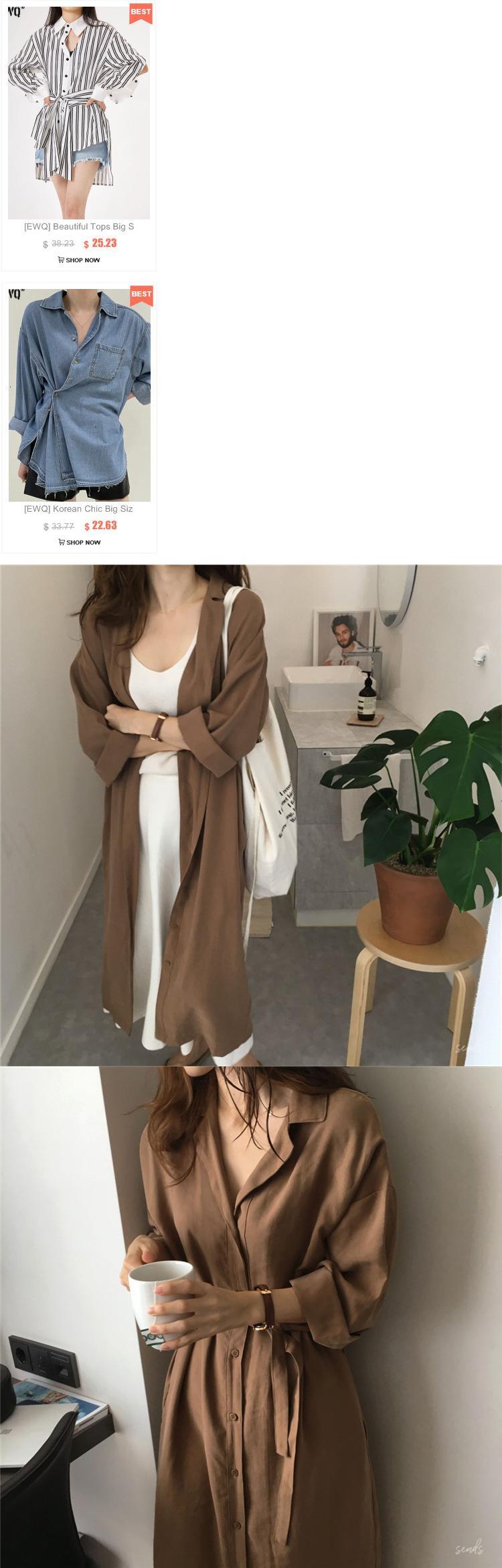 [EWQ] レースアップシャツドレスシングルブレストルーズアウタードレス夏潮ソリッドカラー Vestido サマー 夏物
