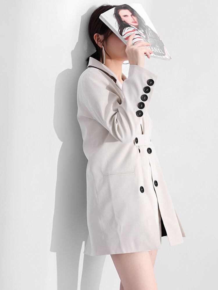 [EWQ] シックルーズフィットボタンロングスリットベルト付きジャケット長袖レディースコート潮秋春ブレザーアウター スプリング 春物 オータム 秋物 ハーネス