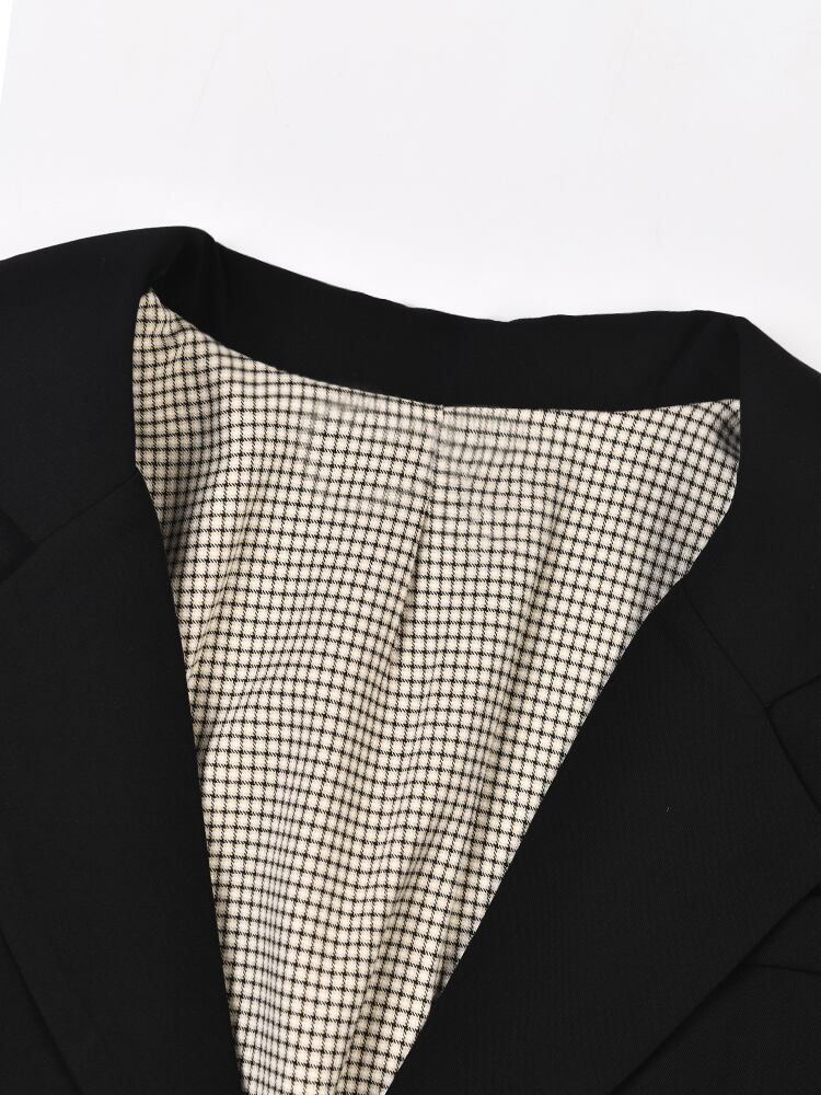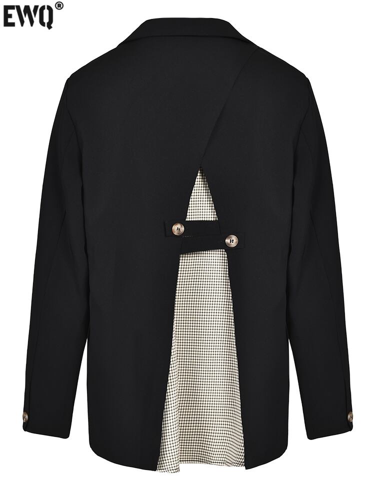 [EWQ] パッチワーク包帯スプライスブレザーコート内側チェック柄コントラストカラー長袖ルーズフィットスーツジャケット夏潮 ロング サマー 夏物