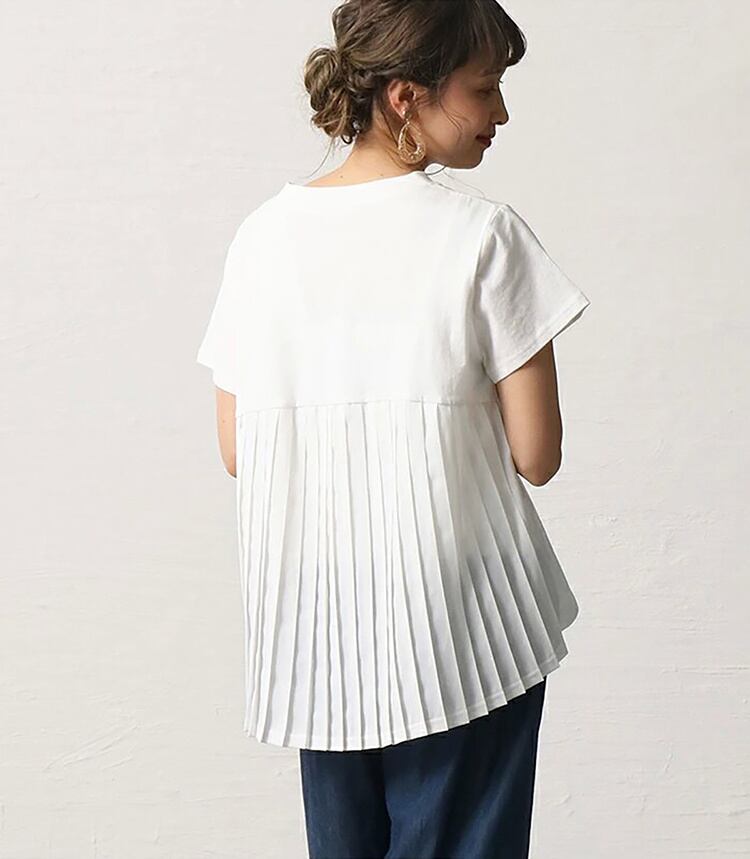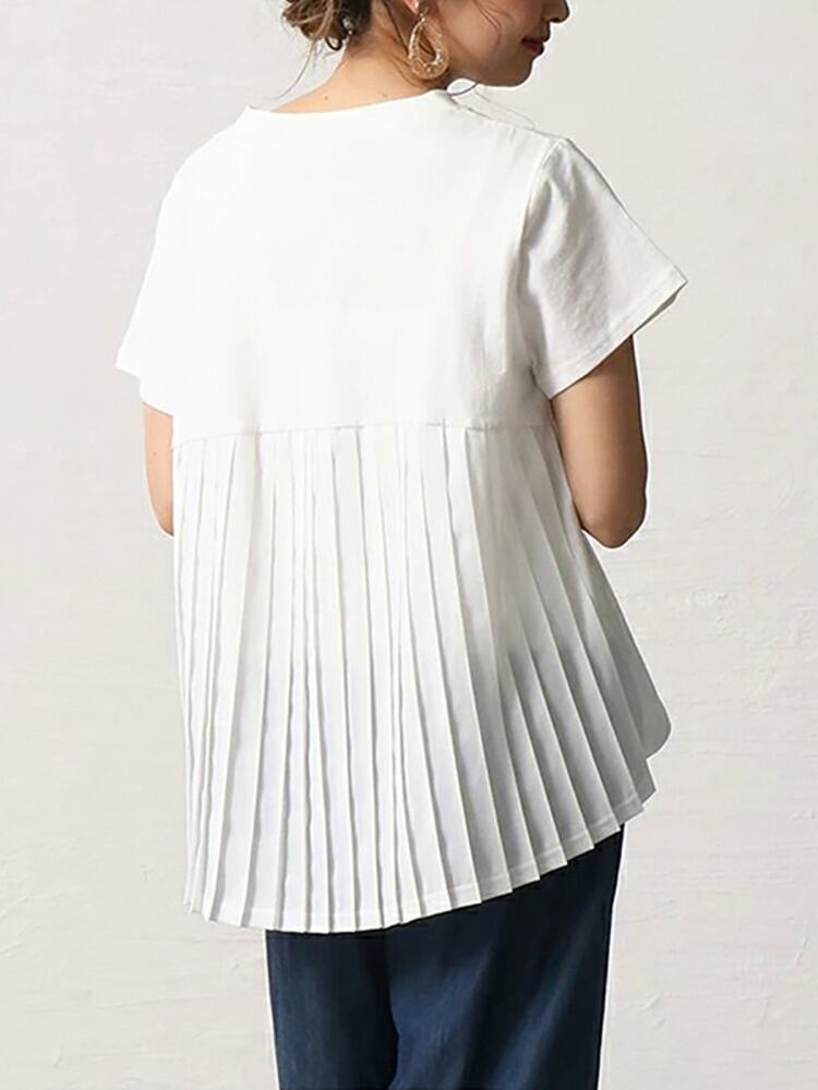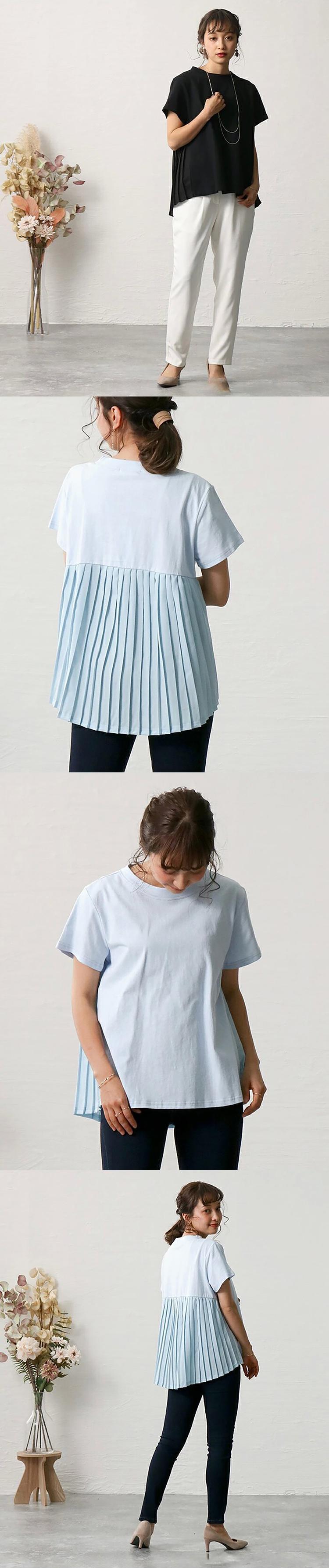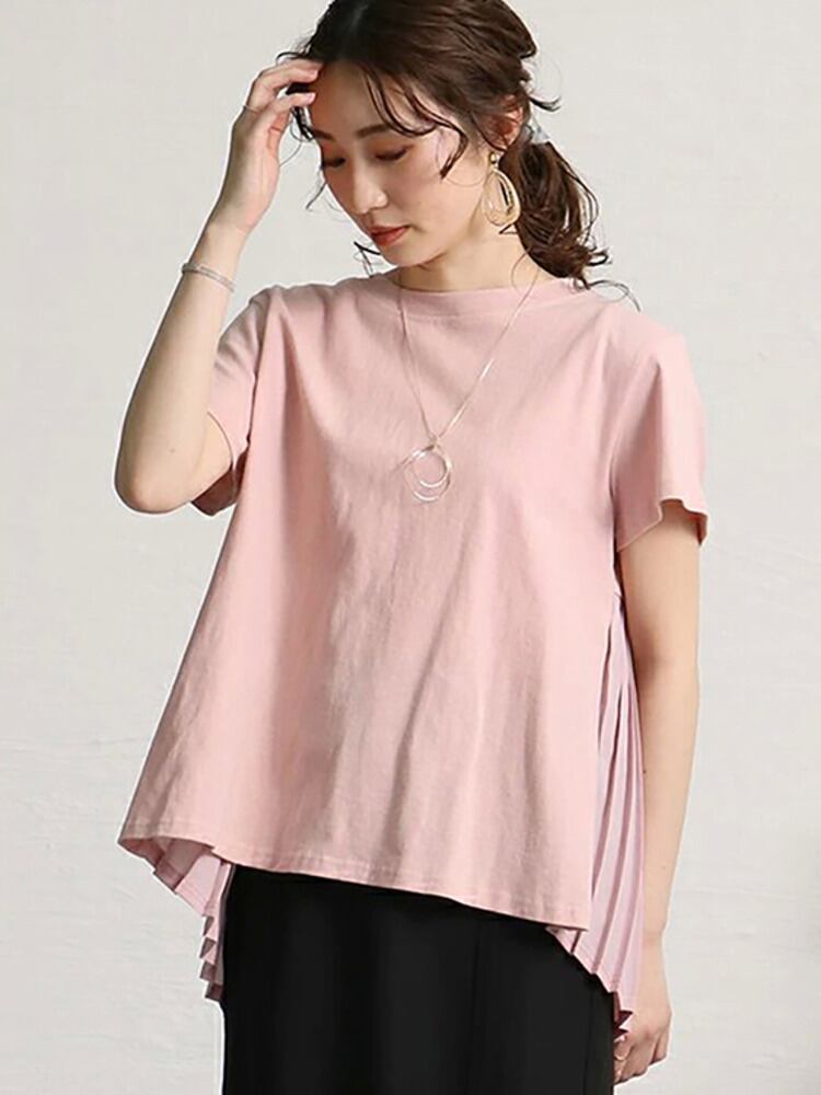 [EWQ] プリーツパッチワークルーズフィット Tシャツ半袖ピンク O ネック Tシャツトップ夏潮 Tシャツ 6U125 ショート ハーフスリーブ サマー 夏物 Oネック