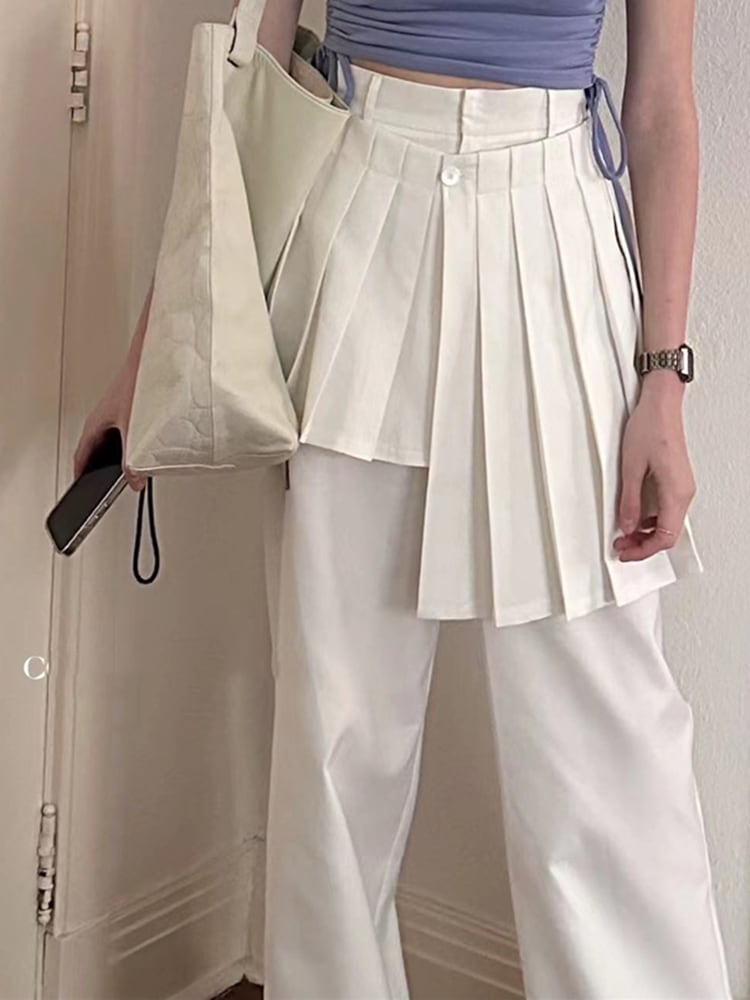 [EWQ] スプライス偽ツーピースズボン紫パッチワークウエスト因果パンツ夏服 サマー 夏物 パープル