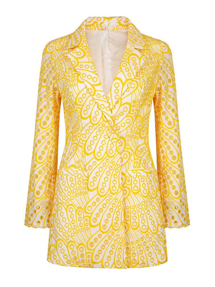 [EWQ] 刺繍ブレザー レディース ノッチカラー 長袖 プリント カラーブロック カットアウト ブレザー 秋 ロング オータム 秋物
