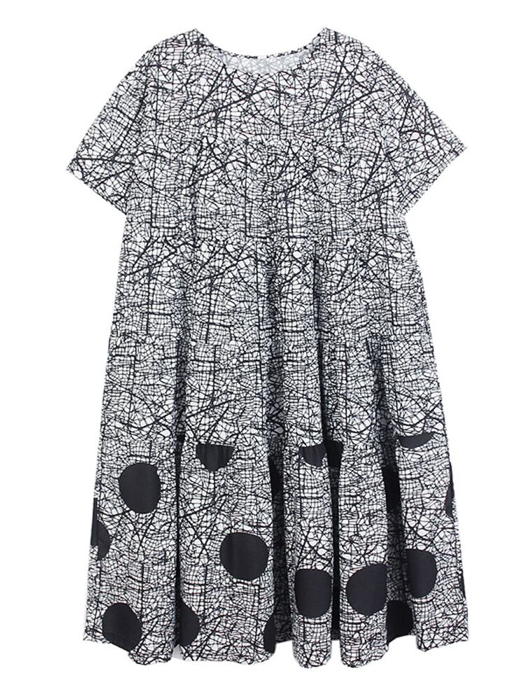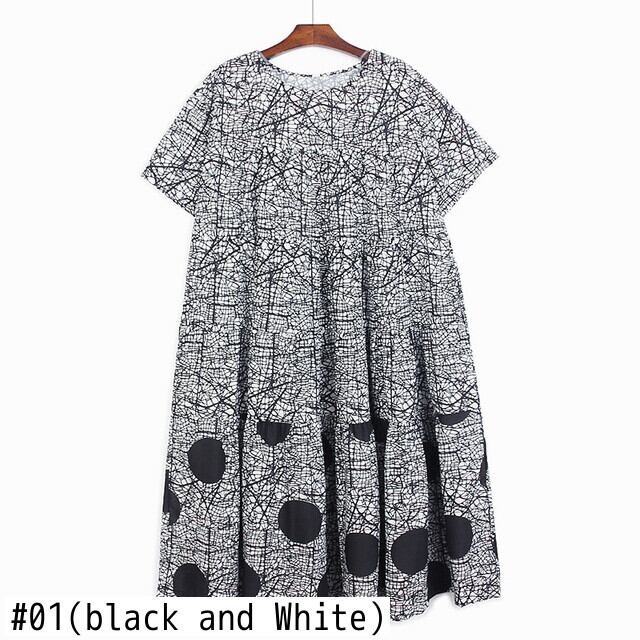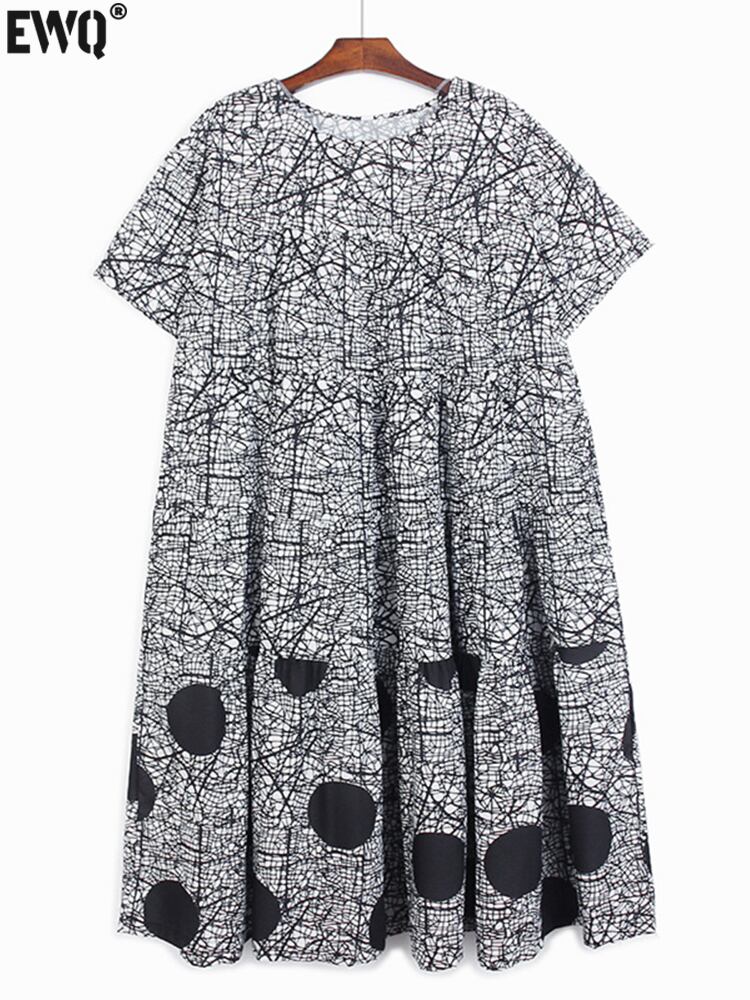 [EWQ] メッシュプリント半袖ドレスコントラストカラー O ネック水玉ビッグサイズ夏潮 Vestido ショート ハーフスリーブ サマー 夏物 Oネック