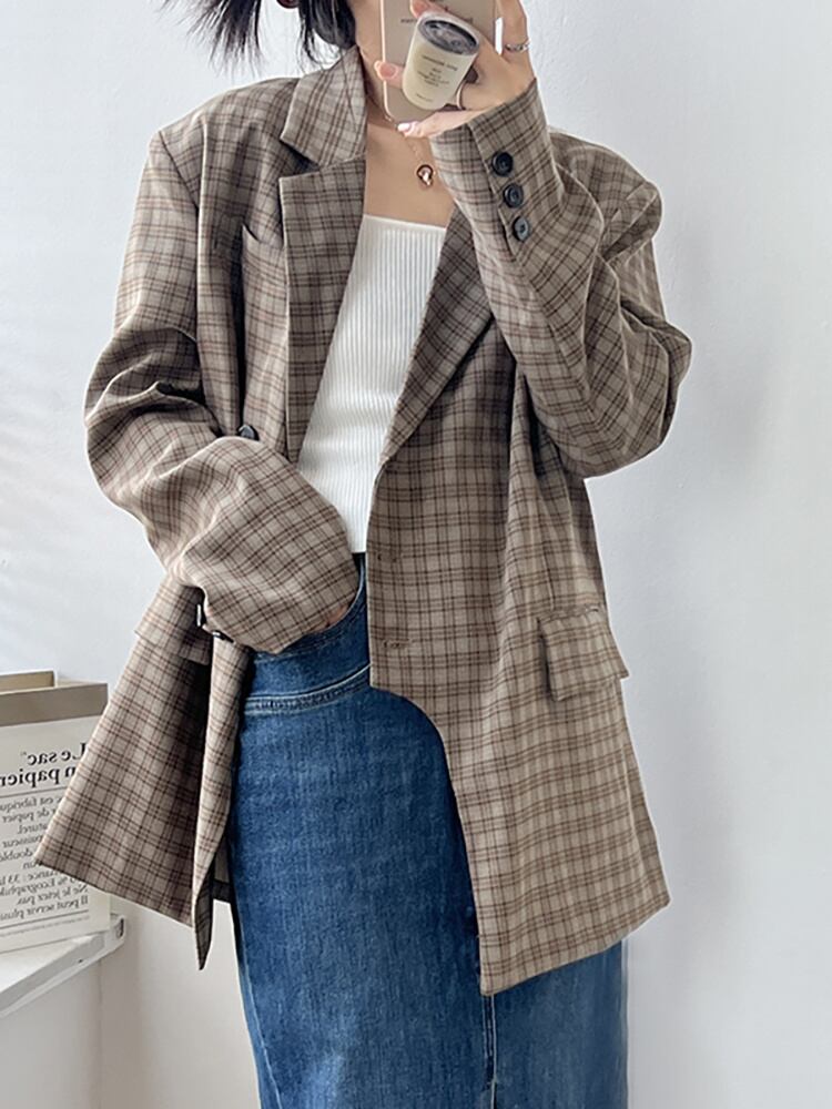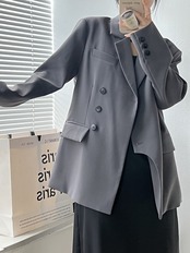 [EWQ] 不規則シングルブレストブレザー Caot ノッチルーズオフィス長袖スーツジャケット春 ロング スプリング 春物 会社 学校 通勤や通学にも