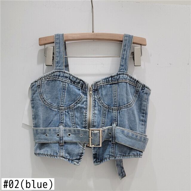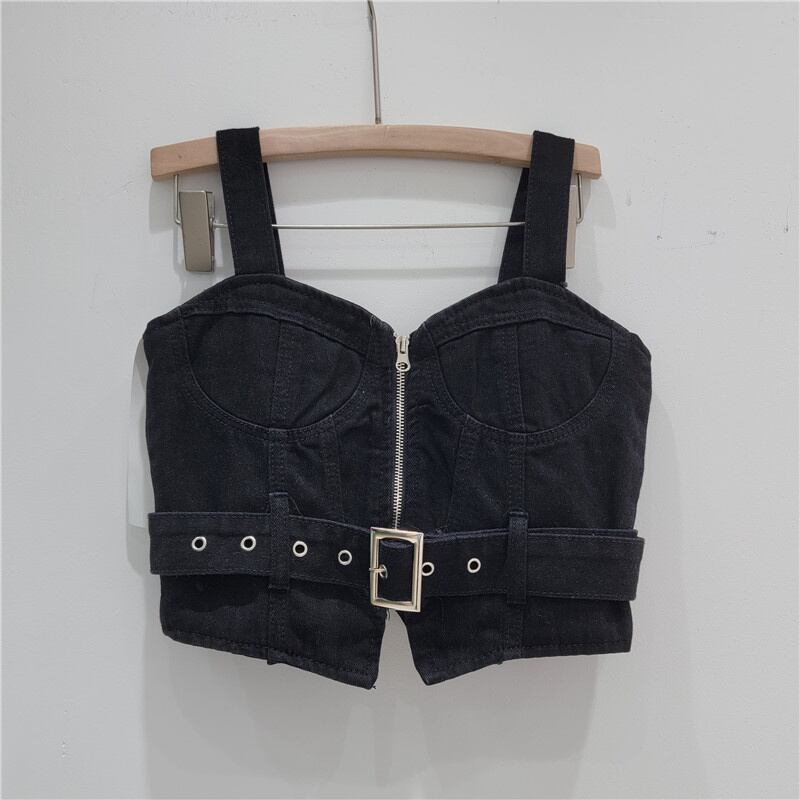 [EWQ] セクシーデニムベスト生き抜く包帯バックル装飾スリムジッパータンクトップ夏潮ノースリーブトップ 16U451 サマー 夏物
