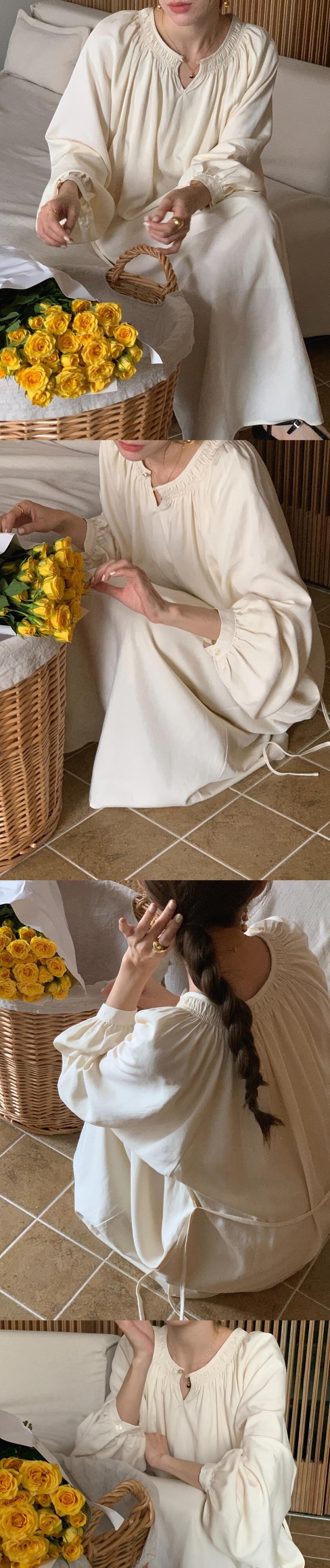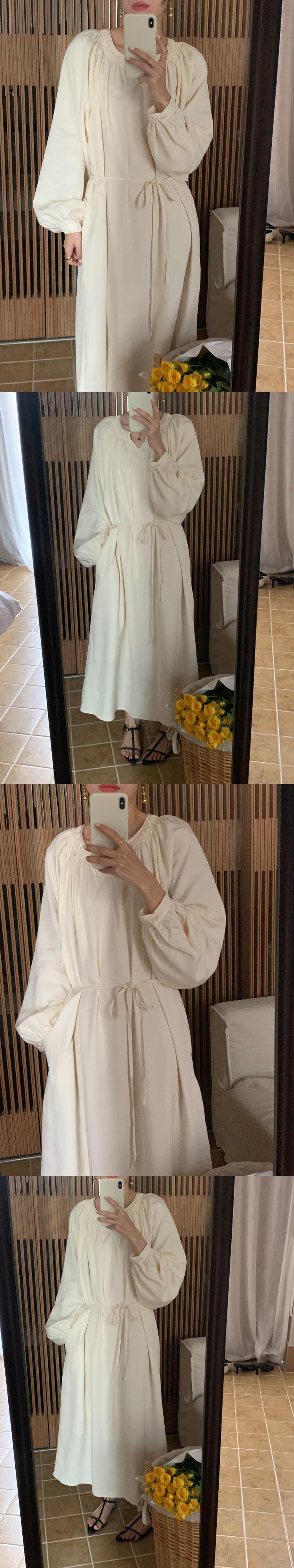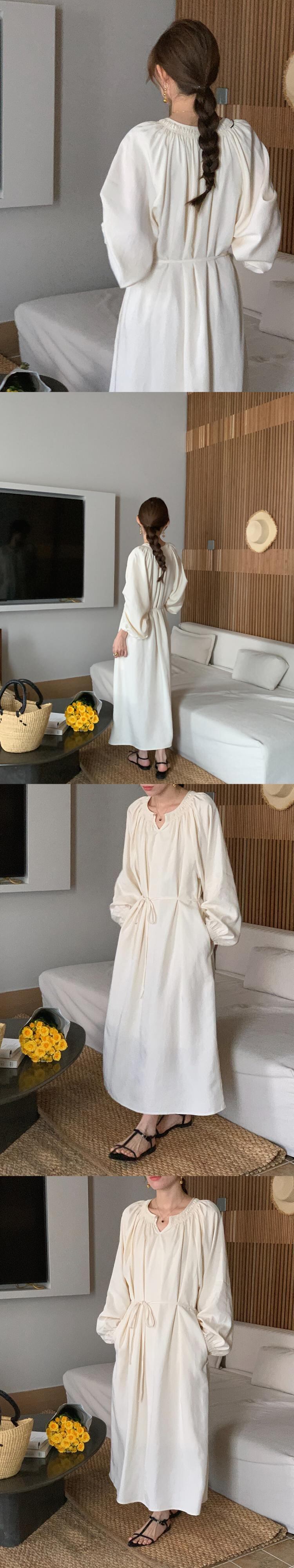 [EWQ] O ネック パール 1 ボタン レースアップ ドレス 無地 パフ スリーブ ドレス 春 秋 Vestido スプリング 春物 オータム 秋物 Oネック 真珠 ソリッドカラー