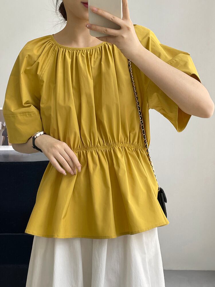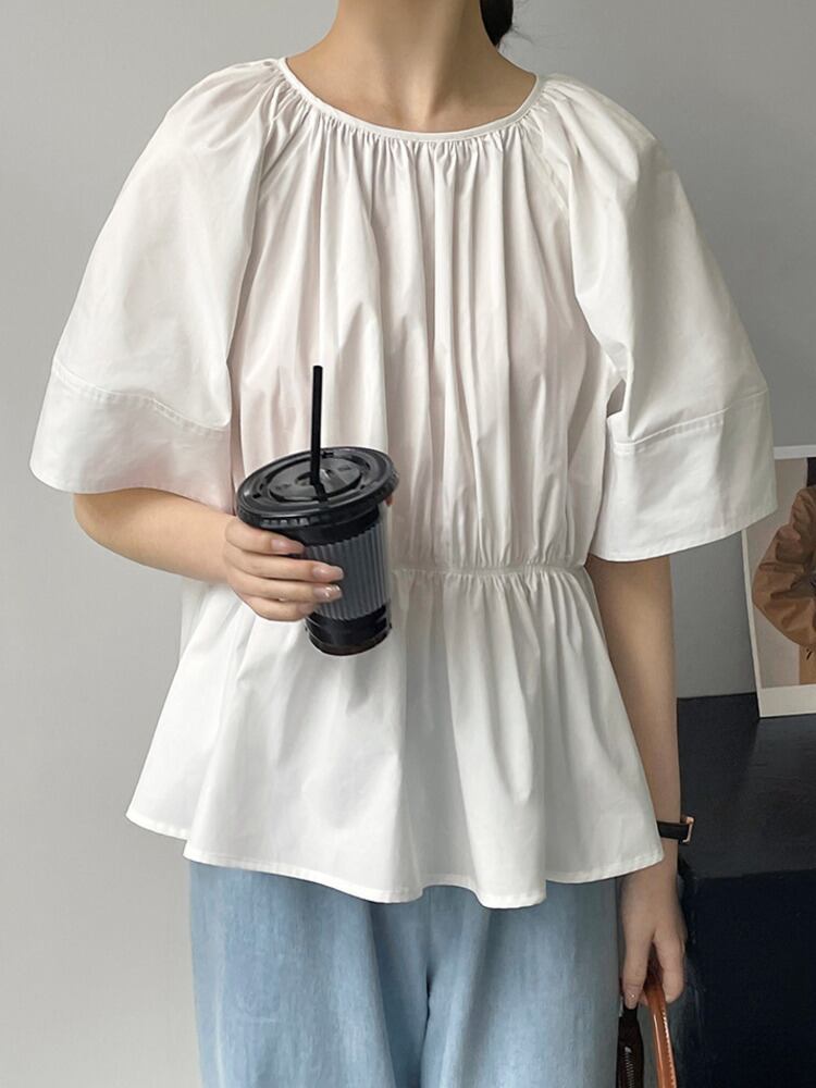 [EWQ] バック中空アウトレースアップシャツ半袖プリーツ白因果ルーズフィット夏潮トップス ショート ホワイト ハーフスリーブ サマー 夏物