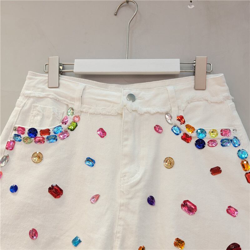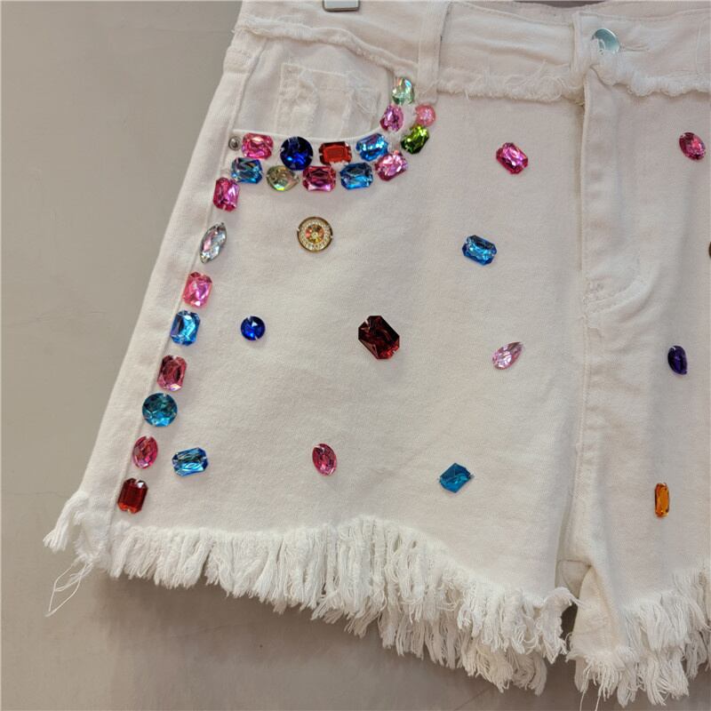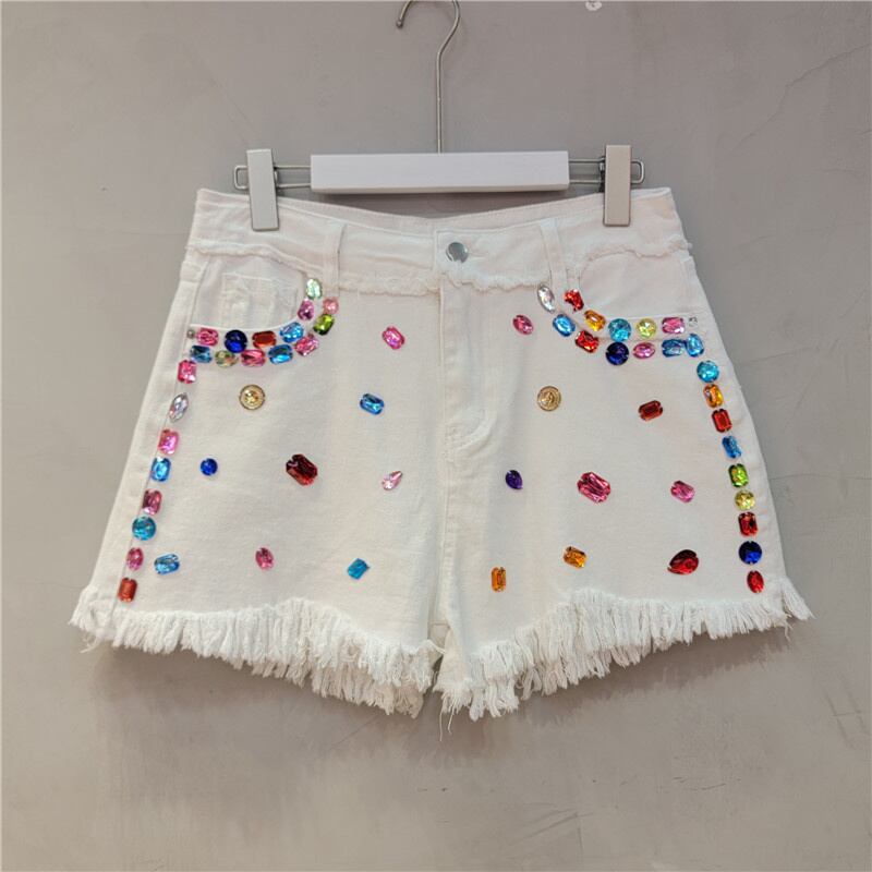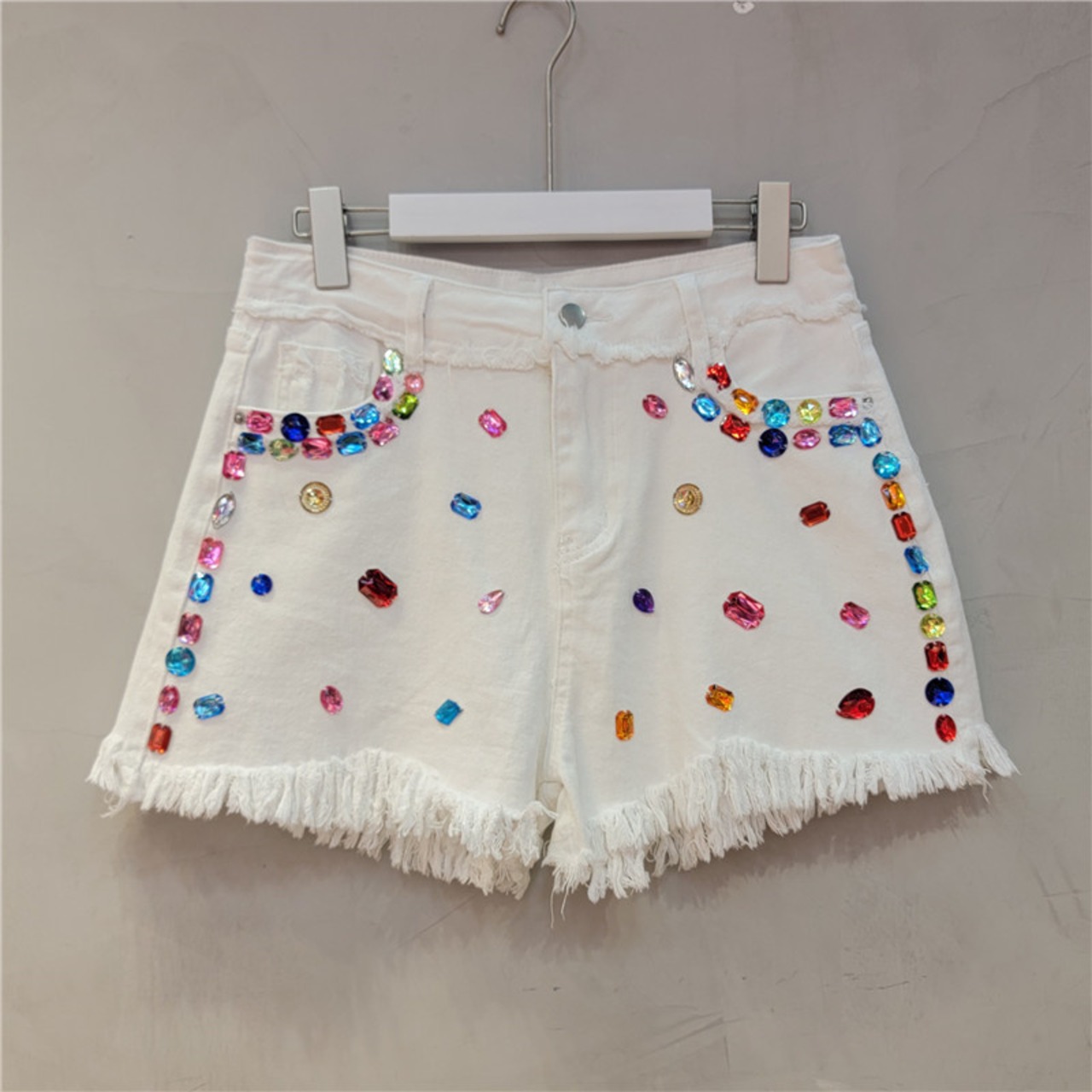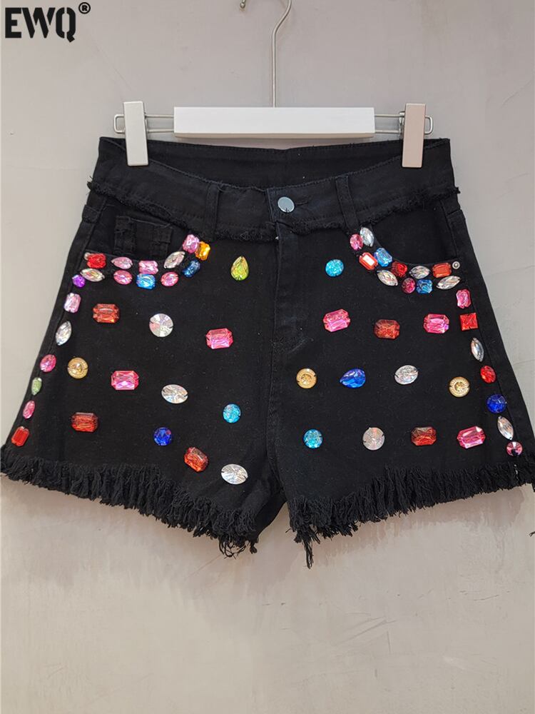 [EWQ] カラフルダイヤモンドデニムショートパンツウエストスリムフィットワイドレッグショートジーンズ夏潮ストリート Y9756 サマー 夏物 ショーツ ブルマー ワイドパンツ