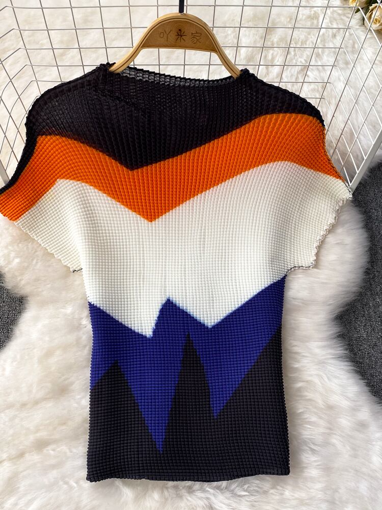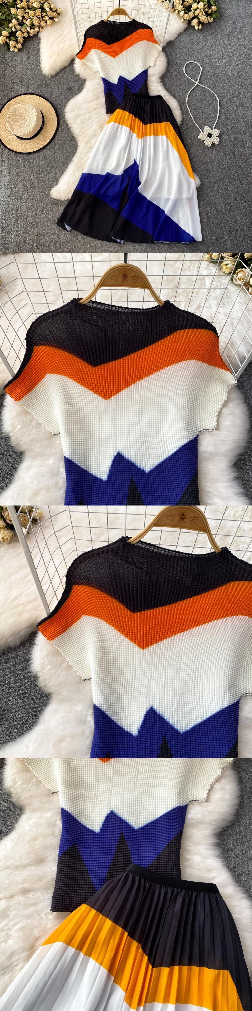 [EWQ] セット半袖プリーツトップ + ウエストプリーツ A ラインスカートツーピーススーツ夏潮服 ショート ハーフスリーブ サマー 夏物 Aライン