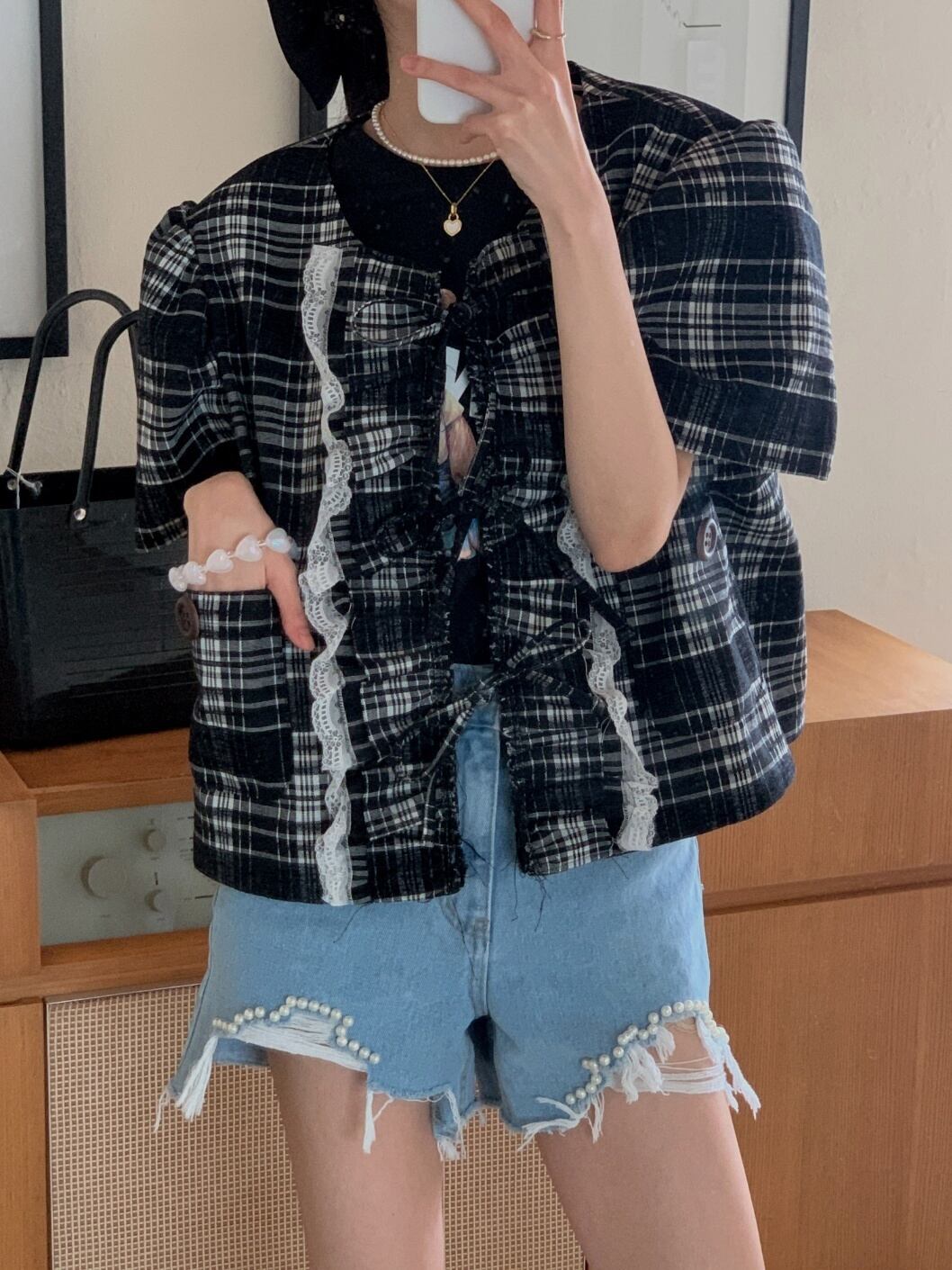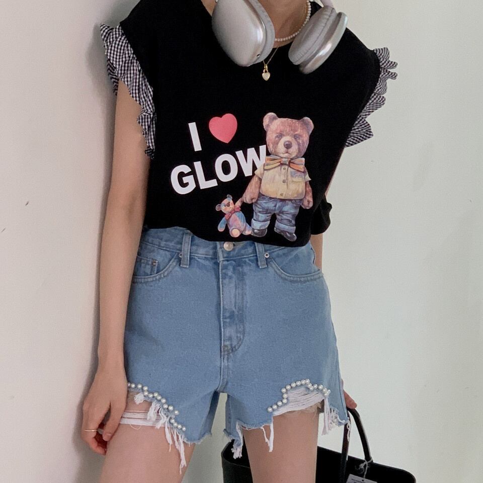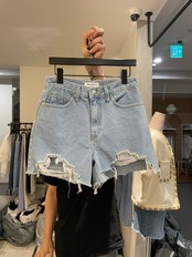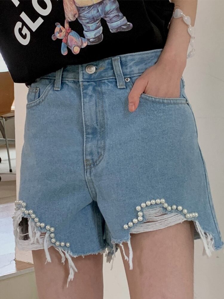 [EWQ] セクシーブロークンホール起毛ビーズデニムショートパンツウエストストリートポケットホットショートジーンズ夏潮 サマー 夏物 ショーツ ブルマー