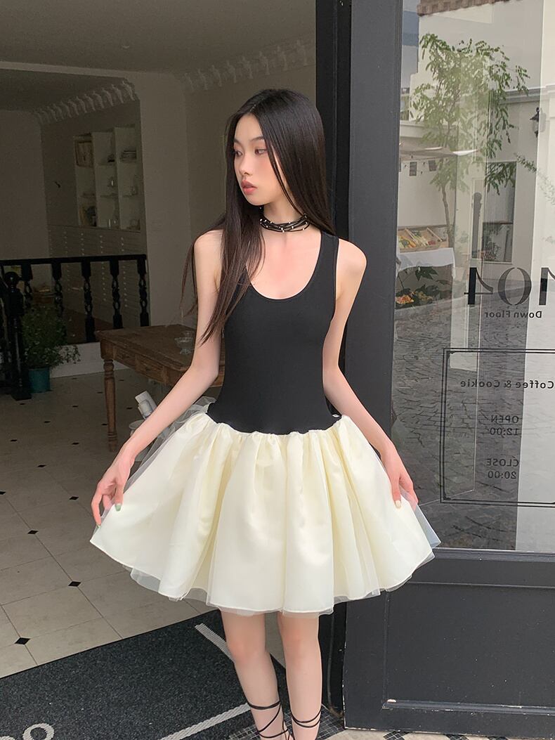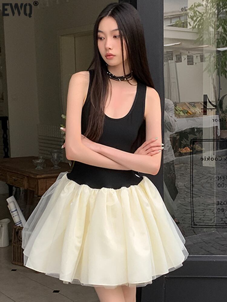 [EWQ] バックレスミニドレスパッチワークビーチ休暇タンクトップストラップドレス夏潮 Vestido サマー 夏物