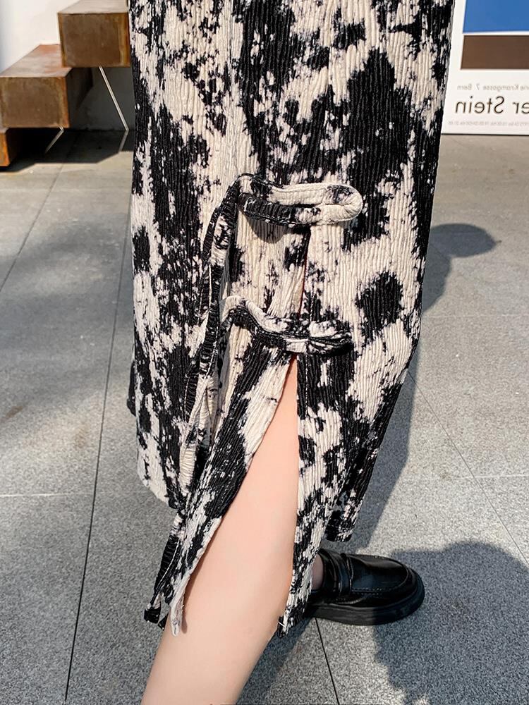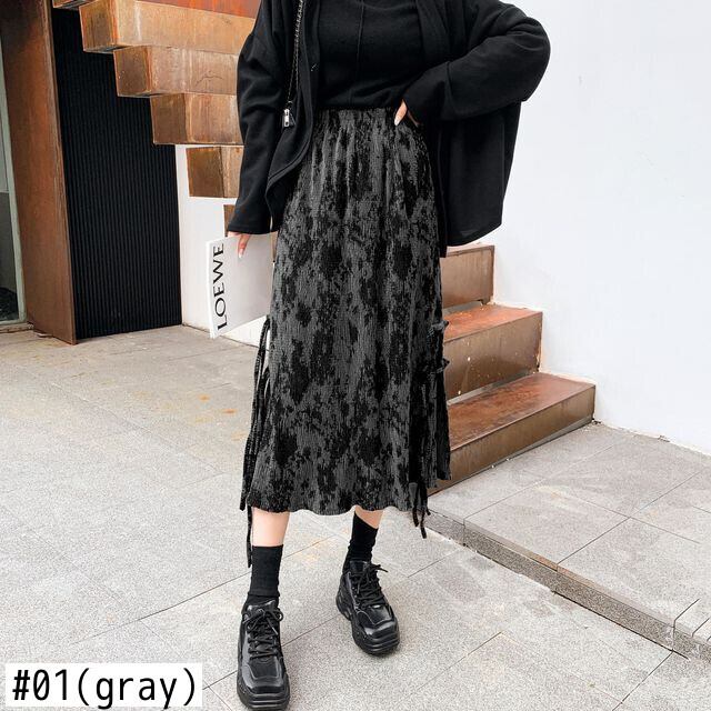[EWQ] レディース タイダイ プリント スカート コントラスト カラー スプリット レースアップ ウエスト A ライン スカート サマー タイド ファルダス 夏物 Aライン