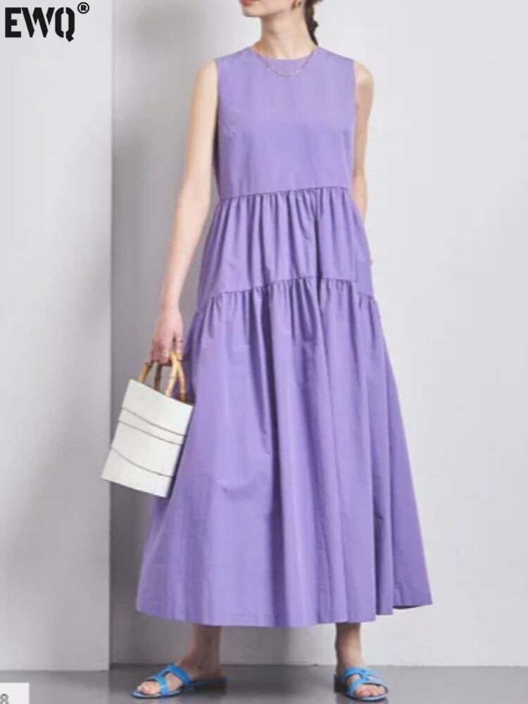 [EWQ] ボヘミアンスタイルドレスバック中空アウトレースアップベストドレス夏潮ノースリーブ Vestido 16U122 サマー 夏物