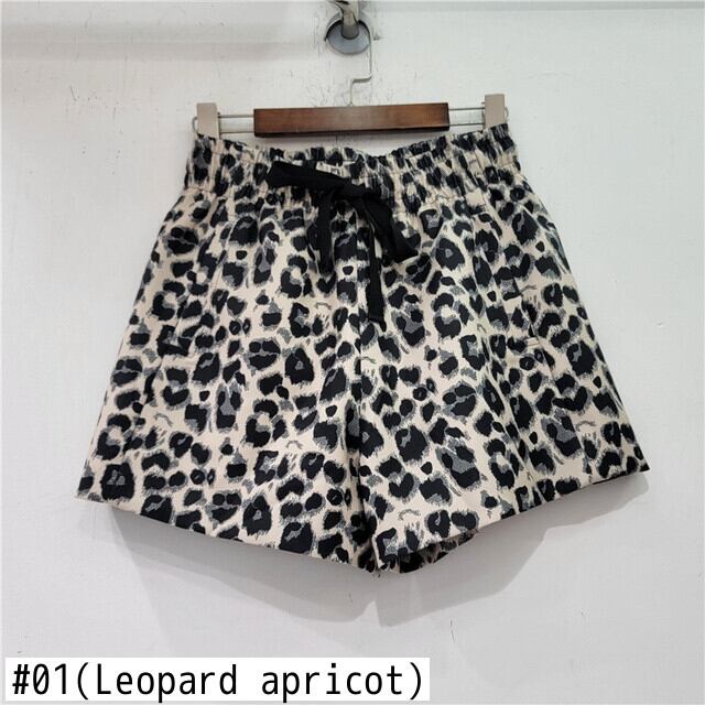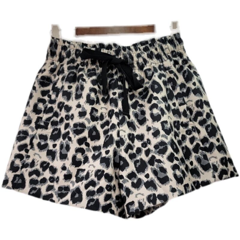 [EWQ] ヒョウ柄コントラストショーツウエスト弾性レースアップストレートショートパンツ夏潮ストリート エラスティック 伸縮 サマー 夏物 ブルマー