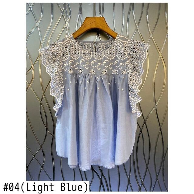 [EWQ] 刺繍入り中空アウトフリルスプライスシャツフライングスリーブルーズフィット因果夏潮トップ レッド サマー 夏物