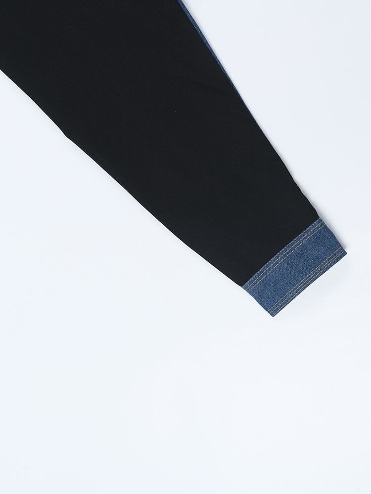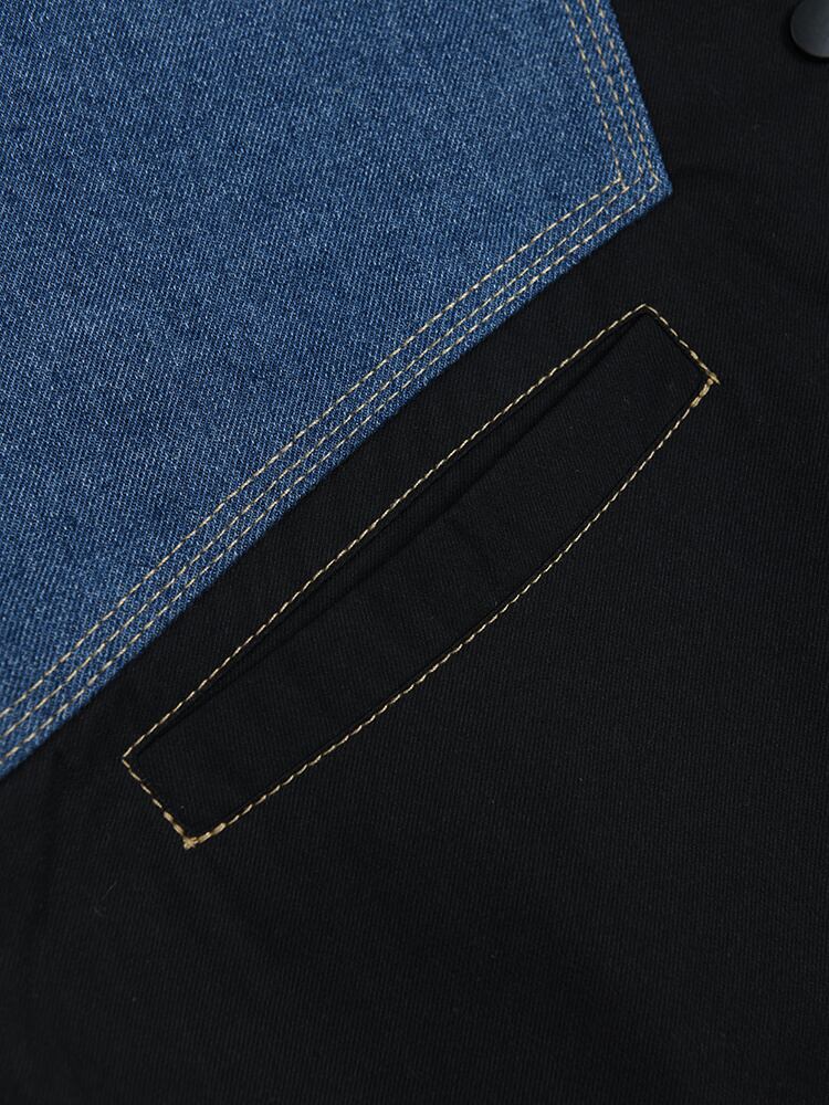 [EWQ]サファリ風デニムステッチ長袖トレンドコート大きいサイズ黒ジャケットトップス春秋アウター ロング ブラック スプリング 春物 オータム 秋物