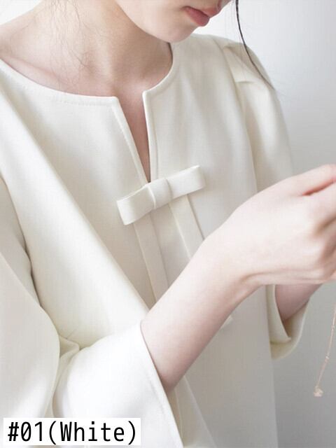[EWQ] V ネック蝶ネクタイシャツスプリットランタンスリーブオーバーサイズトップスソリッドカラーサマータイドホワイトトップ リボン 夏物 Vネック