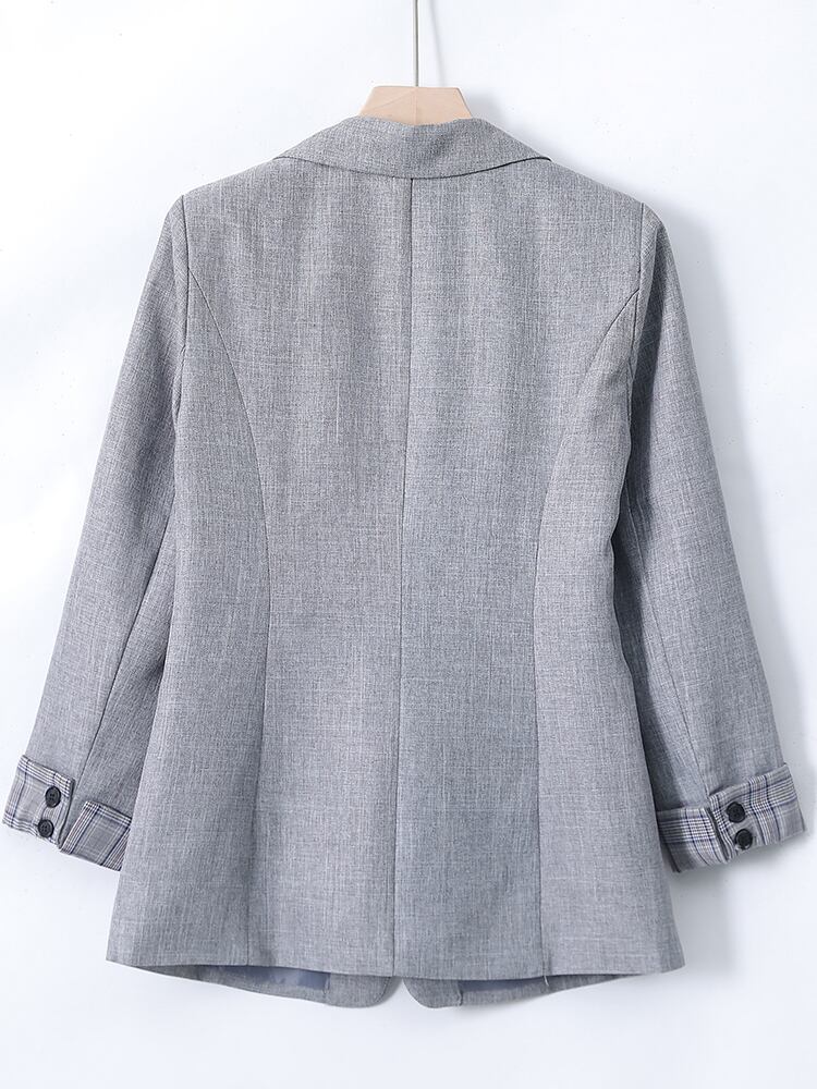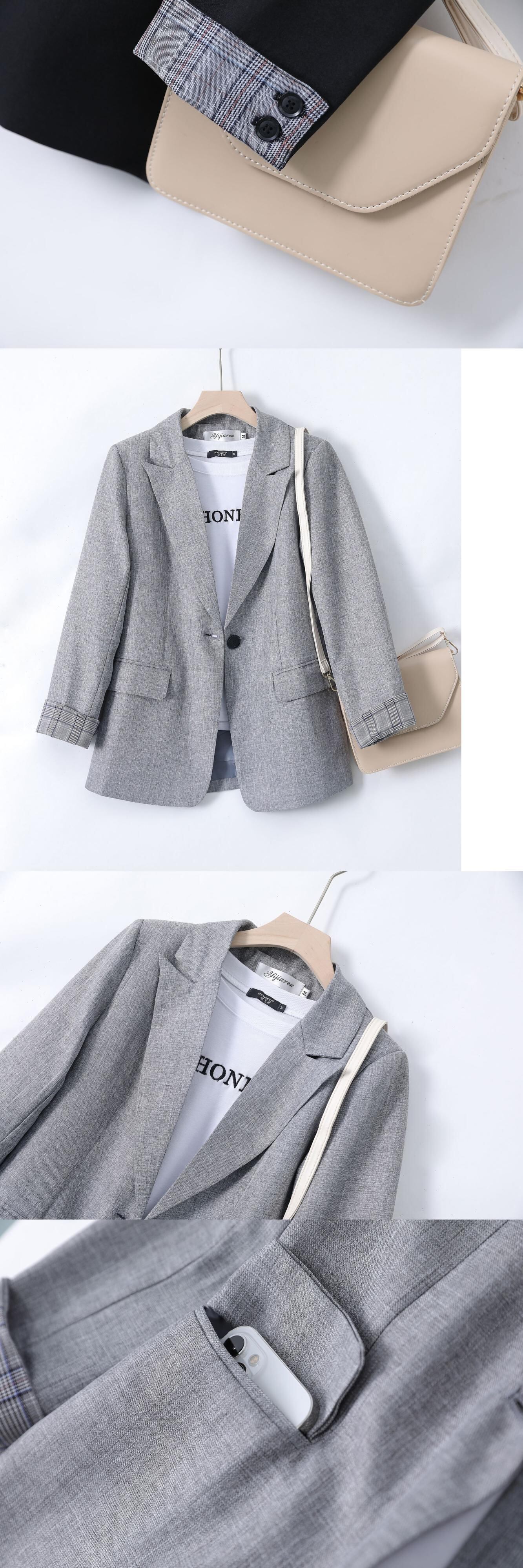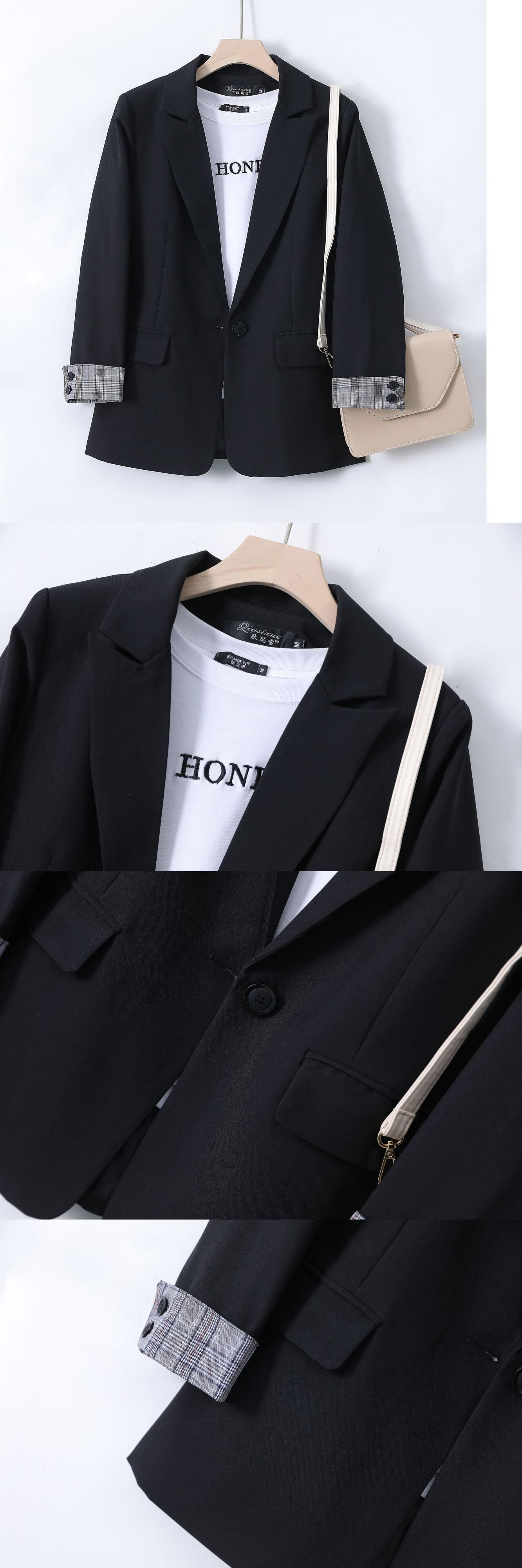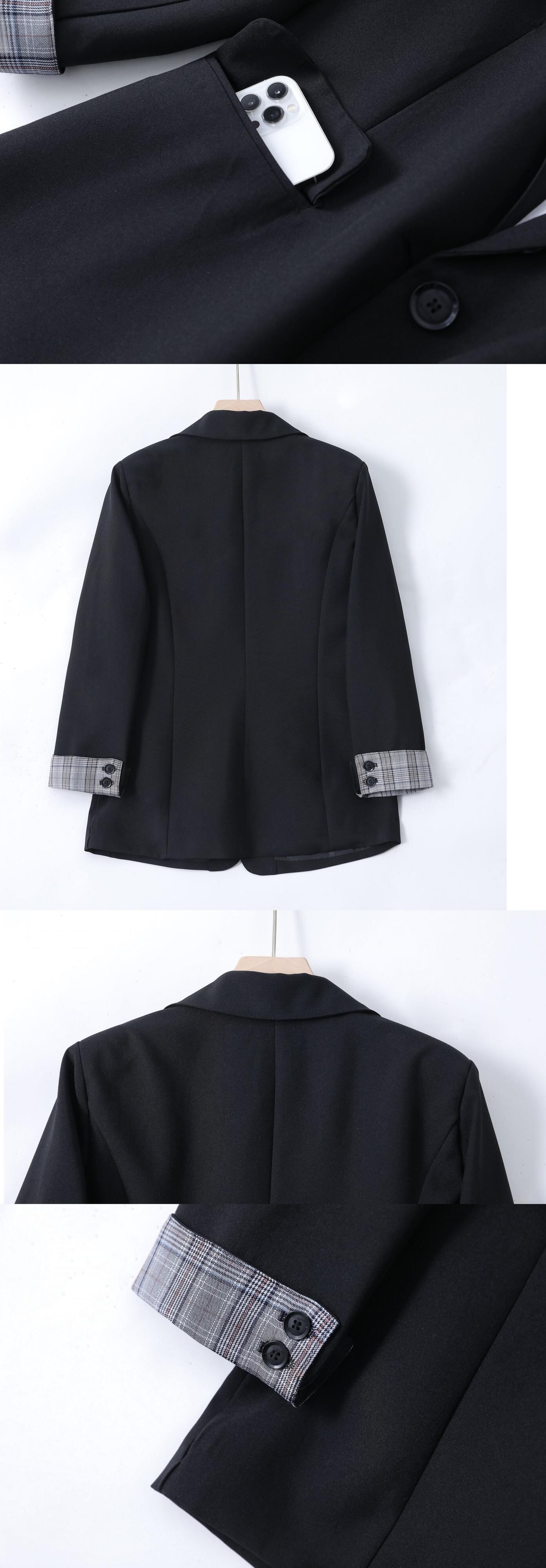 [EWQ] 長袖パッチワーク ブレザー コート ブラック シングルブレスト オーバーサイズ スーツ ジャケット 夏潮服 ロング サマー 夏物