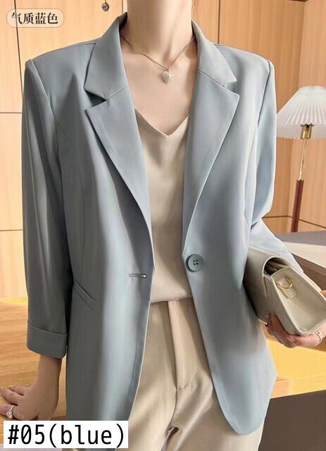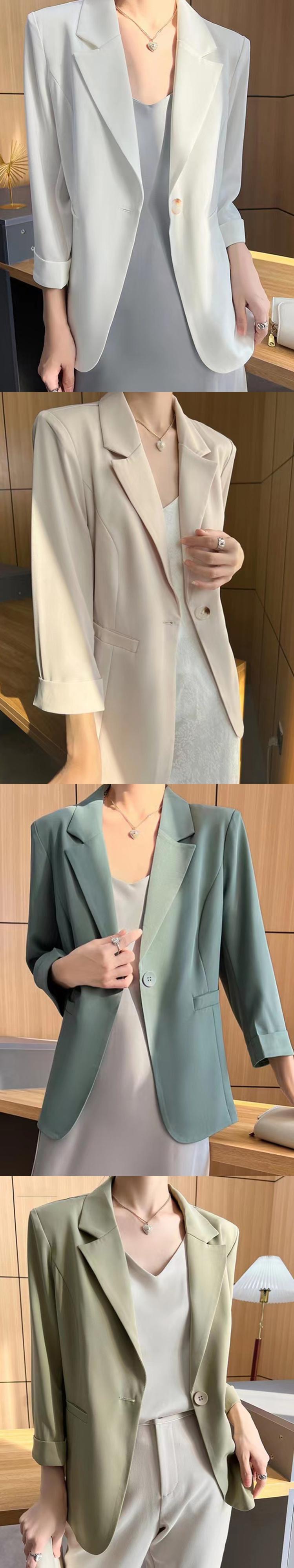 [EWQ] スリークォーター薄型ブレザーコートビッグサイズグリーン 1 ボタンスーツジャケット夏潮服 16U238 サマー 夏物