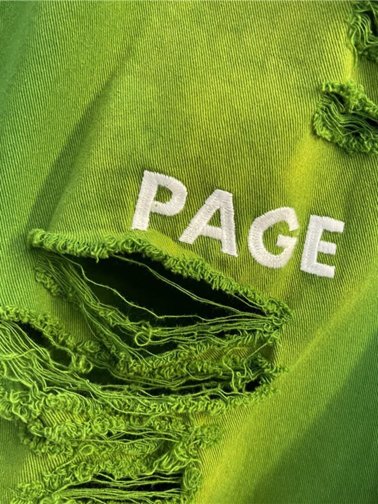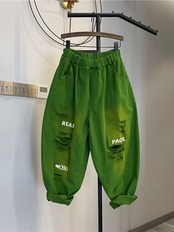 [EWQ] 穴ストリートデニムパンツ夏潮刺繍文字ウエストジーンズズボン 16Y9933 サマー 夏物