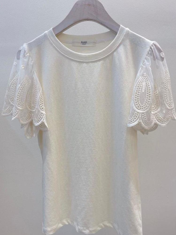[EWQ] 半袖パッチワーク Tシャツ フックフラワー 中空コントラスト ルーズフィット カジュアル Tシャツ トップス 夏潮 16U74 ショート ハーフスリーブ サマー 夏物 フラワーデザイン