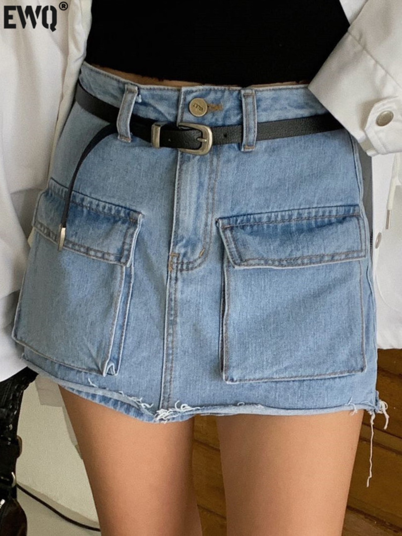 [EWQ] 尻ラップデニムスカートウエストポケットスプライシングテルストリートミニスカート夏潮服 サマー 夏物