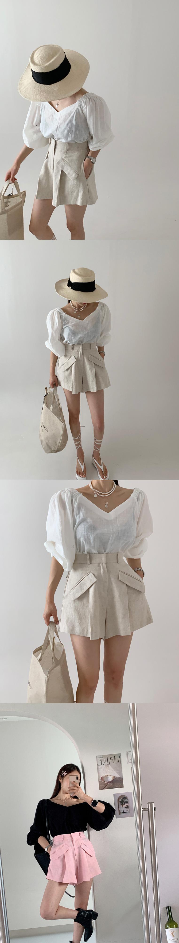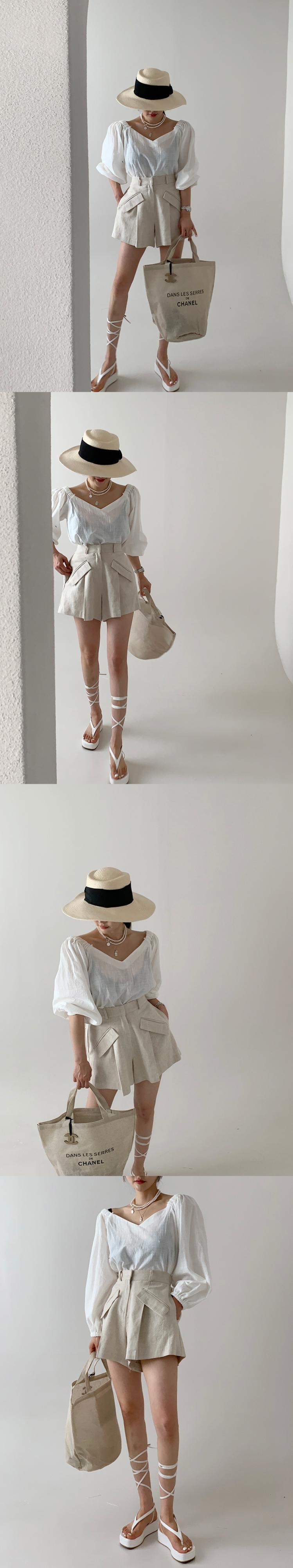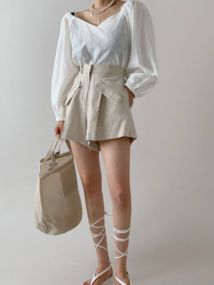 [EWQ] V ネック薄型スリム透明白シャツ + ウエストスプライスポケットショーツ夏ツーピーススーツ ホワイト サマー 夏物 ブルマー Vネック