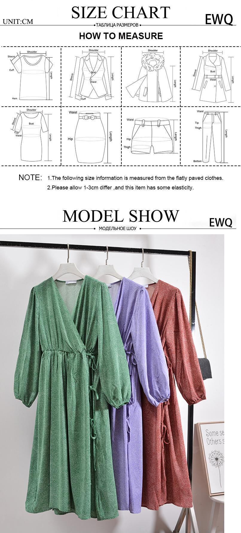 [EWQ] V ネックドットレースアッププリーツドレスランタンスリーブドレス夏潮優しい気質ローブ サマー 夏物 Vネック