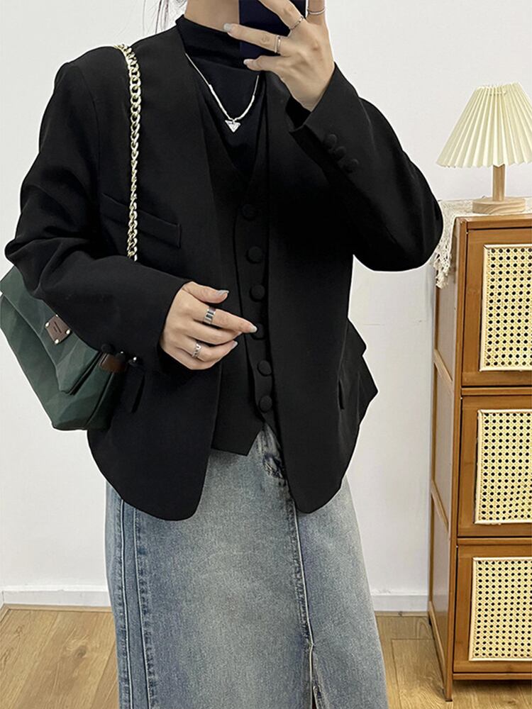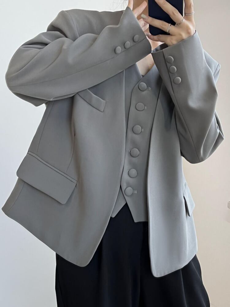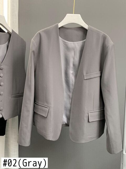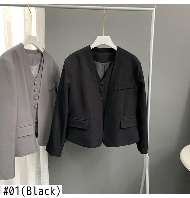 [EWQ] ブレザー コート 夏潮 ツーピース ノースリーブ ベスト OL 長袖 スーツ ジャケット 6U404 ロング サマー 夏物 会社 学校 通勤や通学にも