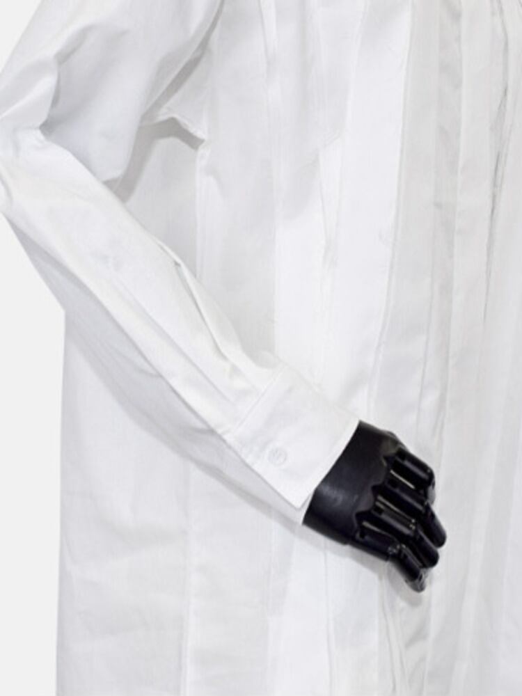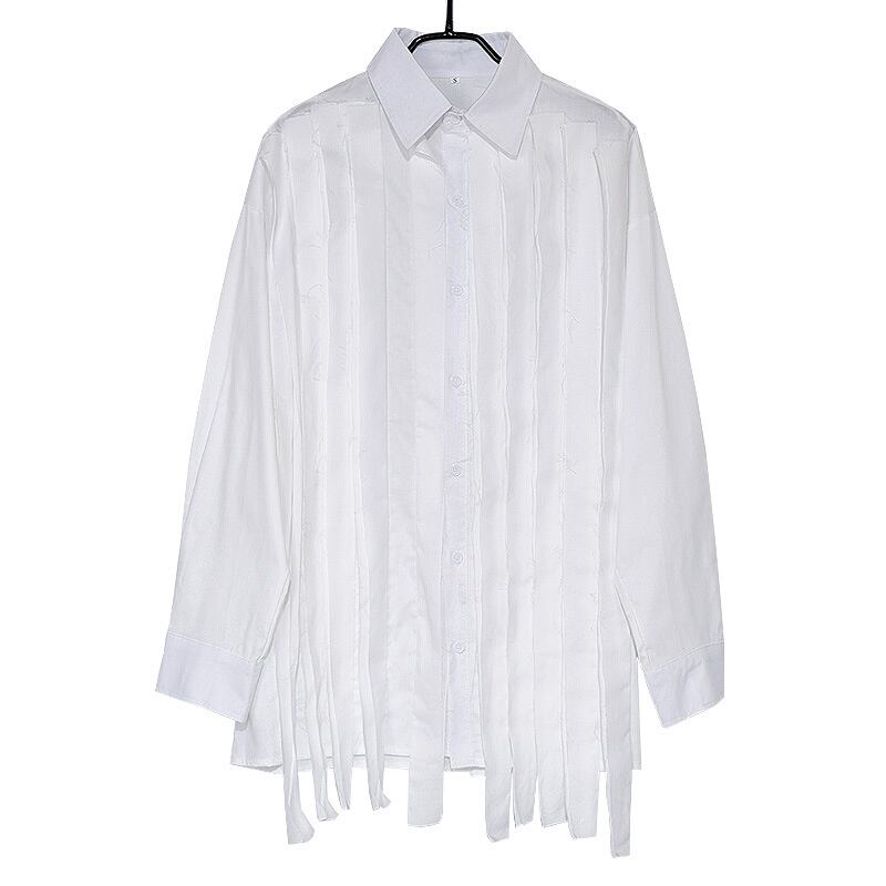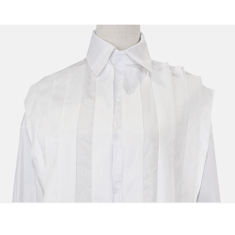 [EWQ] レディース不規則パッチワークリボンシャツ白長袖ルーズシングルブレストサマータイドトップ 599 ロング ホワイト 夏物