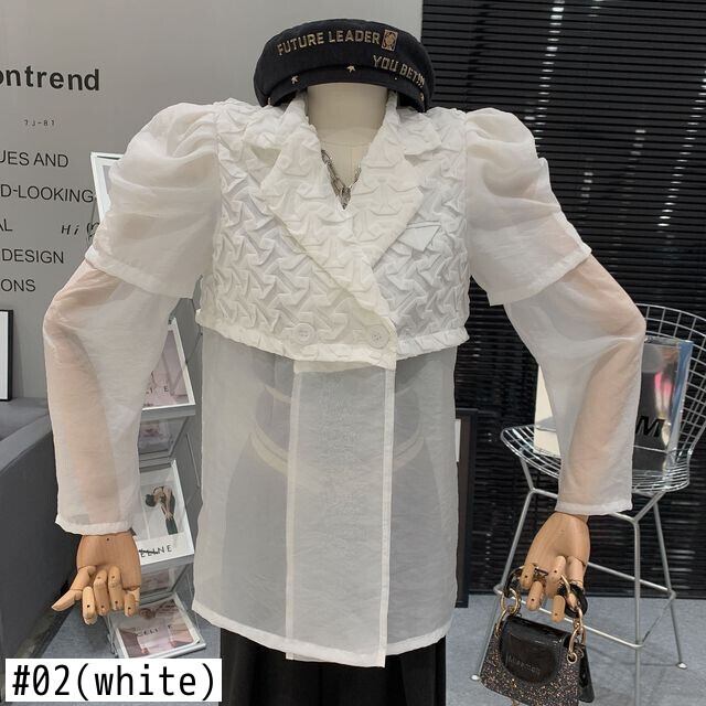 [EWQ] 夏メッシュ透視シャツ パッチワーク 長袖 ゆったり カジュアル ブラウス トップス 夏潮 ワンボタン トップス 21 ロング サマー 夏物