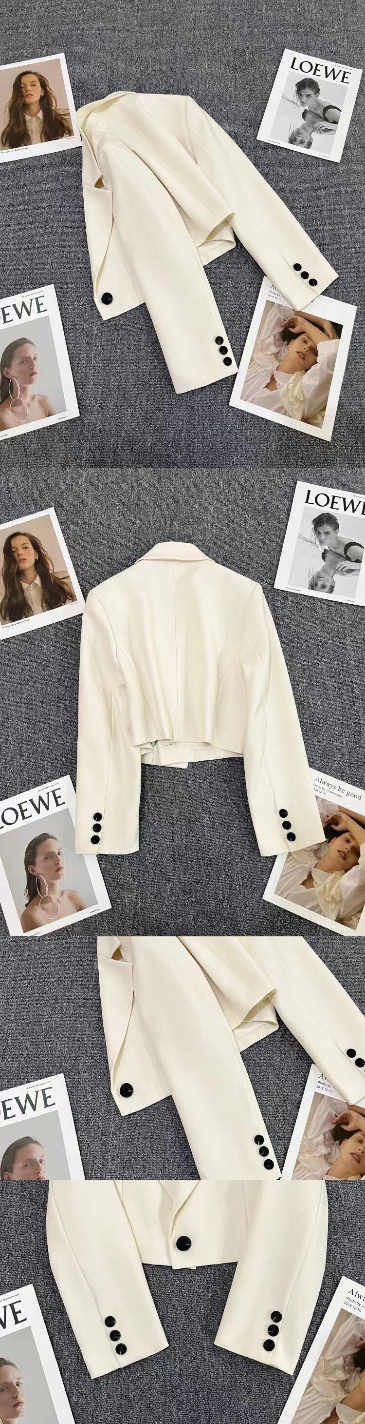 [EWQ] 黒ブレザーコート 1 ボタンルーズフィットショートスーツジャケット夏潮オフィスレディブレザー 16U229 ブラック サマー 夏物 会社 学校 通勤や通学にも