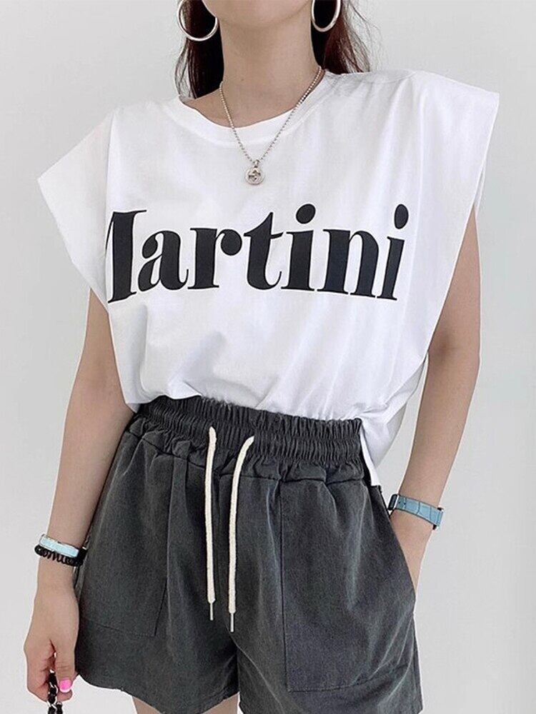 [EWQ] レタープリントルーズ Tシャツフライングスリーブ O ネック Tシャツトップ夏潮 Tシャツ 534 サマー 夏物 Oネック