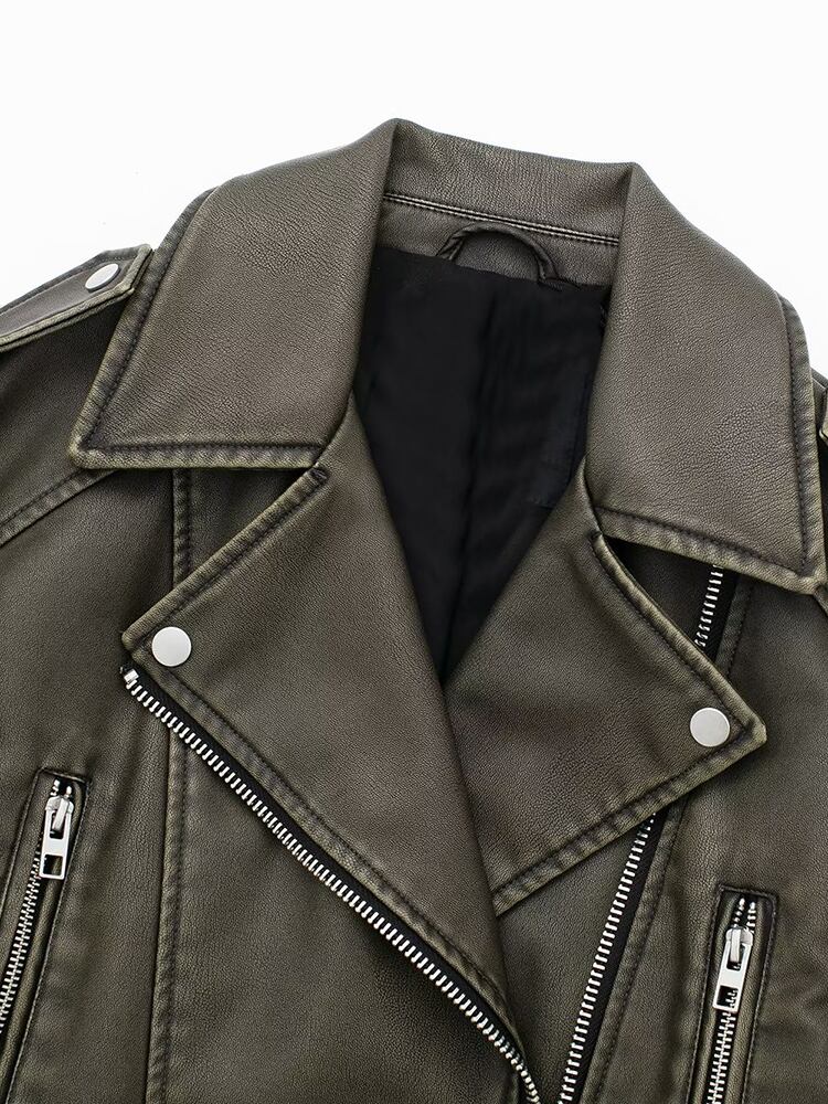 [EWQ] 模造レザージャケットジッパー装飾長袖ショート PU ジャケットコート夏 650 ロング サマー 夏物