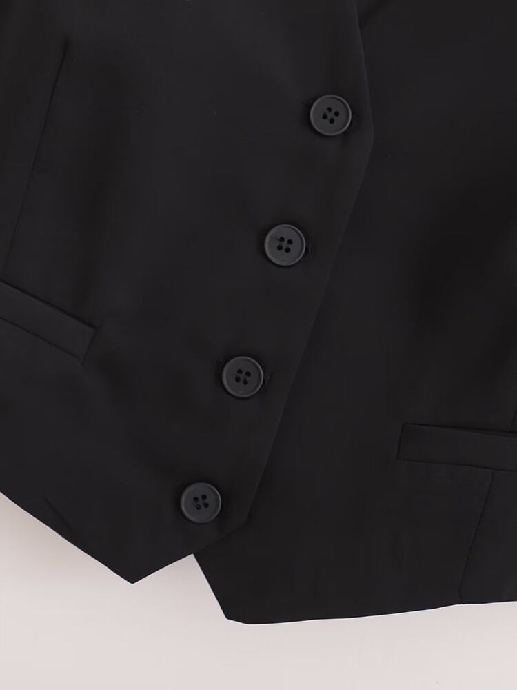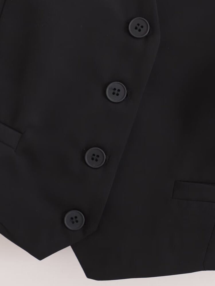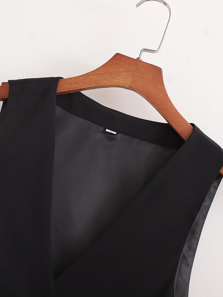[EWQ] V ネックホリデーベストシングルブレストブラックノースリーブジャケット夏潮タンクトップ 16U644 サマー 夏物 Vネック