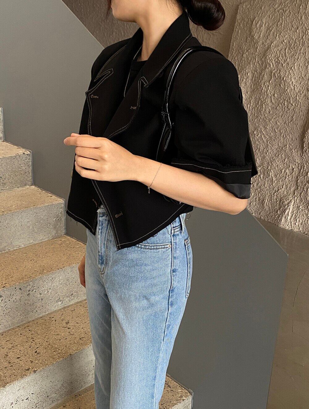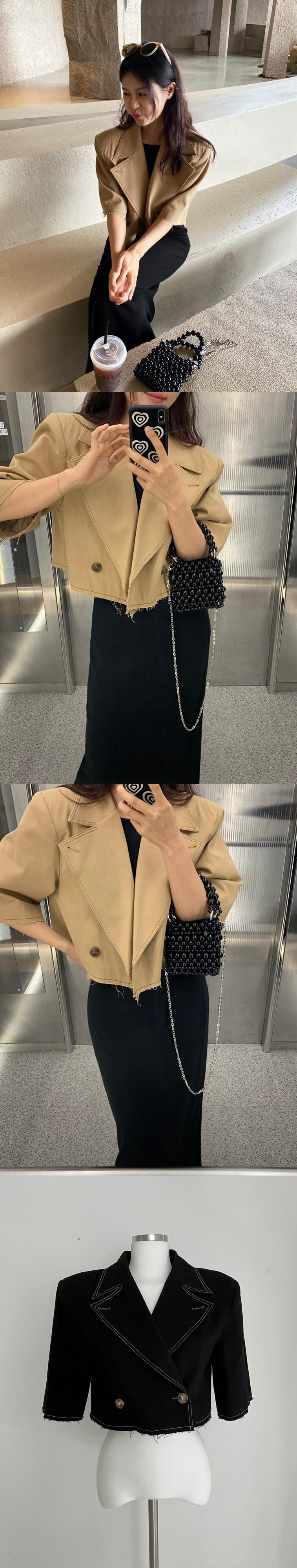 [EWQ] ショルダーパッドバリショートブレザーコートブライトライン装飾ダブルブレストスーツジャケット夏潮 サマー 夏物