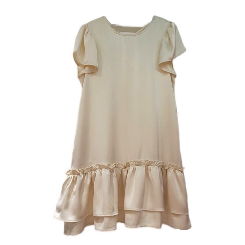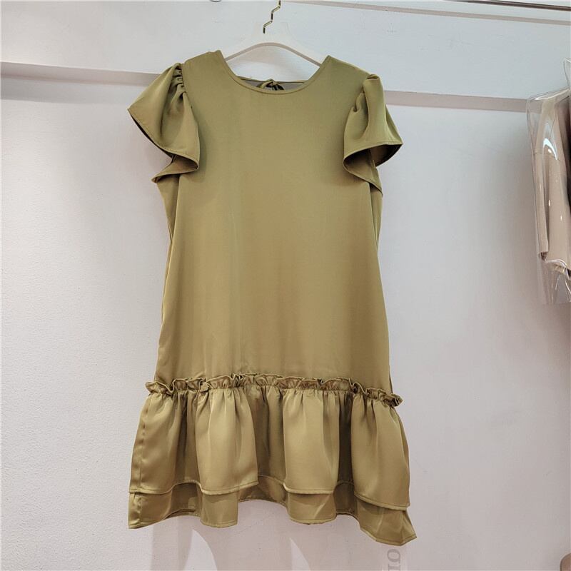 [EWQ] フリルパッチワークドレス半袖折り目ルーズ O ネック T シャツドレス夏潮 Vestido U589 ショート ハーフスリーブ サマー 夏物 Oネック Tシャツ