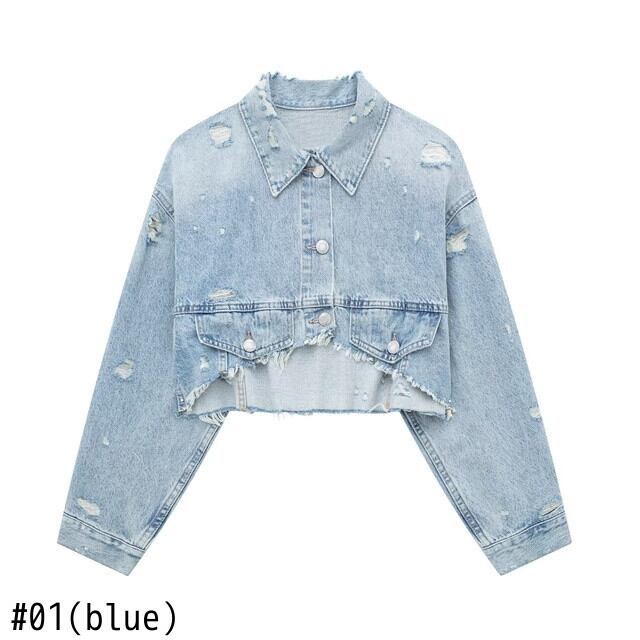 [EWQ] ほつれ非対称パッチワークデニムジャケットストリート長袖ショートジャケットコート夏潮 ロング サマー 夏物